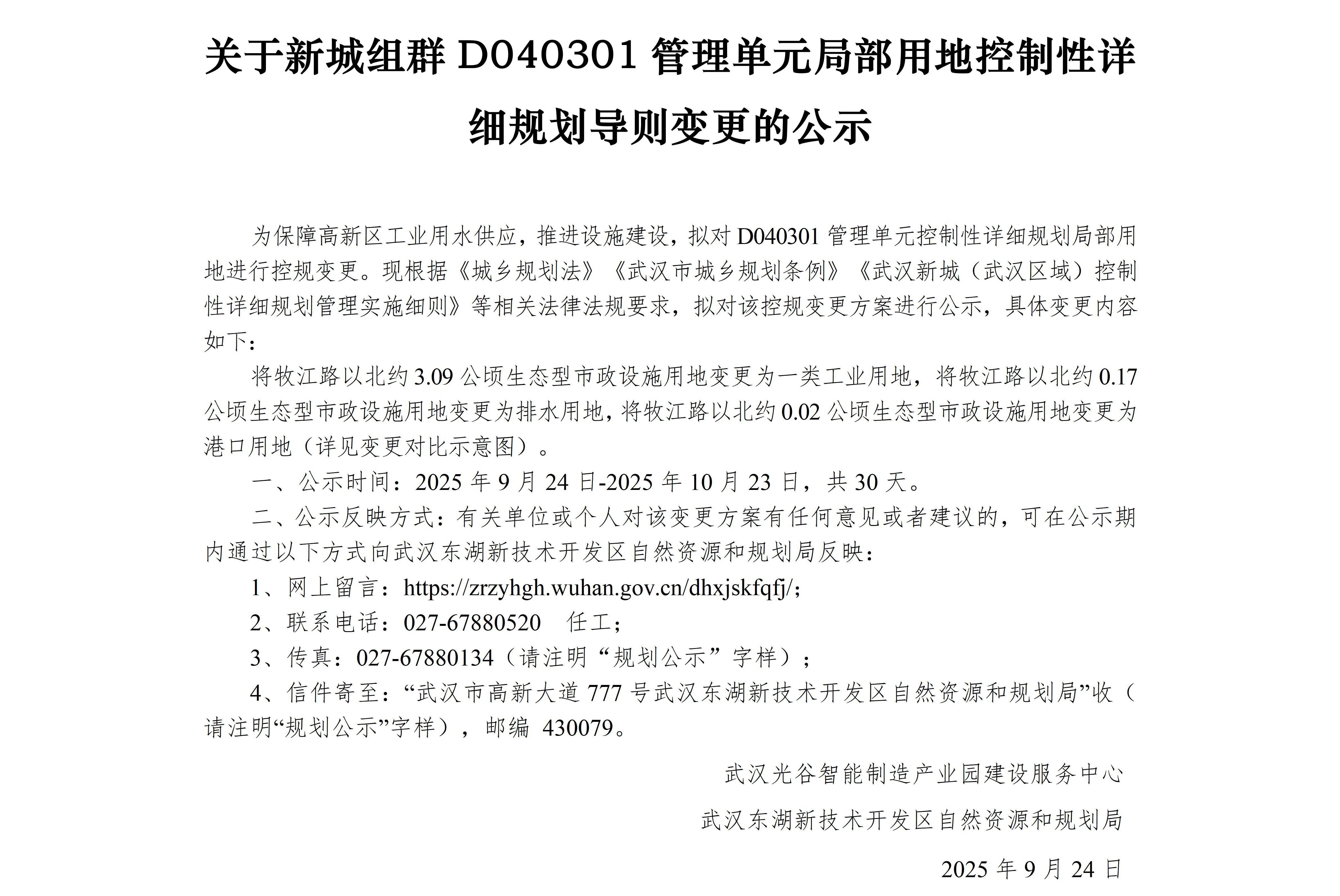 关于新城组群D040301管理单元局部用地控制性详细规划导则变更的公示