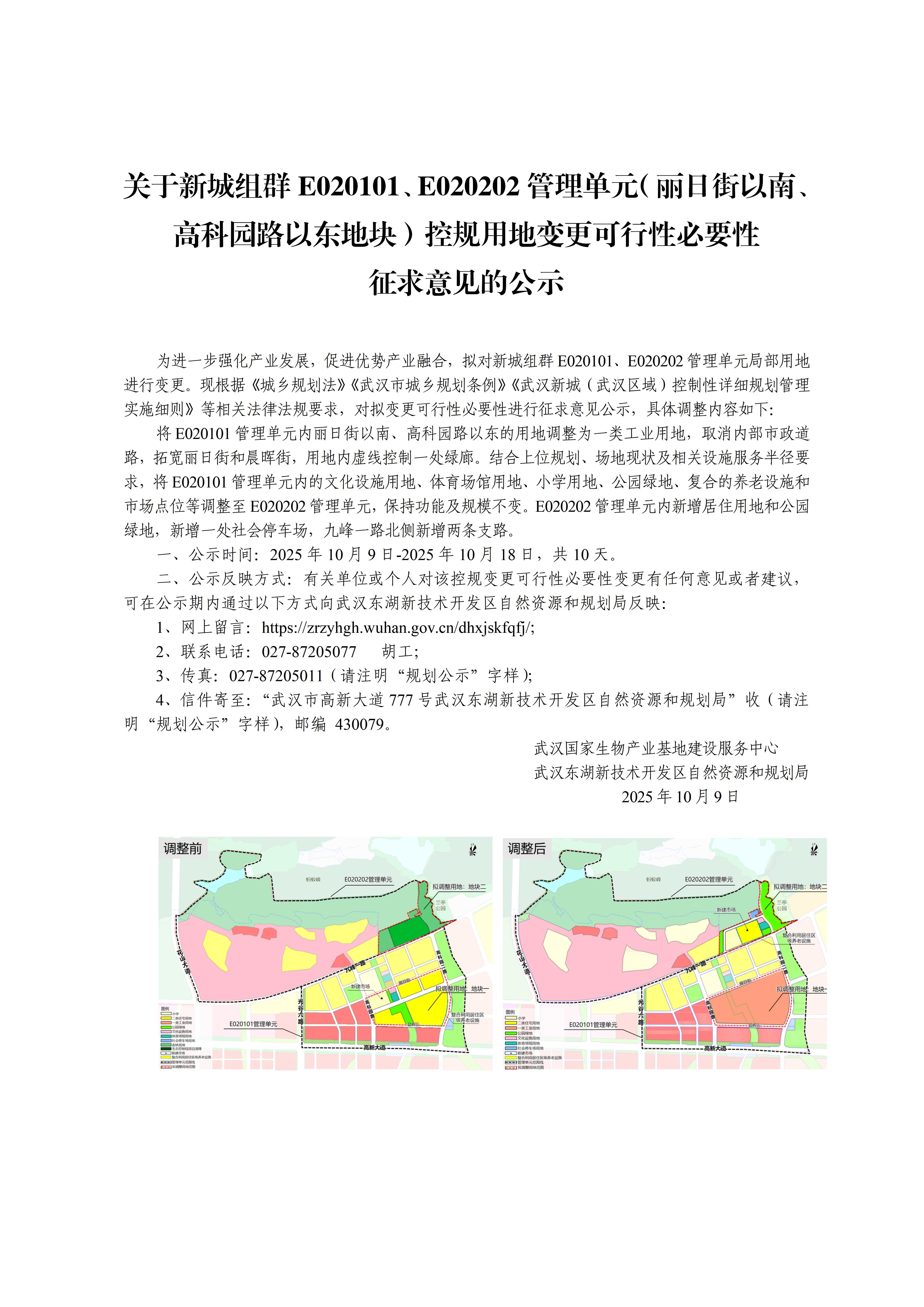 关于新城组群E020101、E020202管理单元(丽日街以南、高科园路以东地块)控规用地变更可行性必要性征求意见的公示