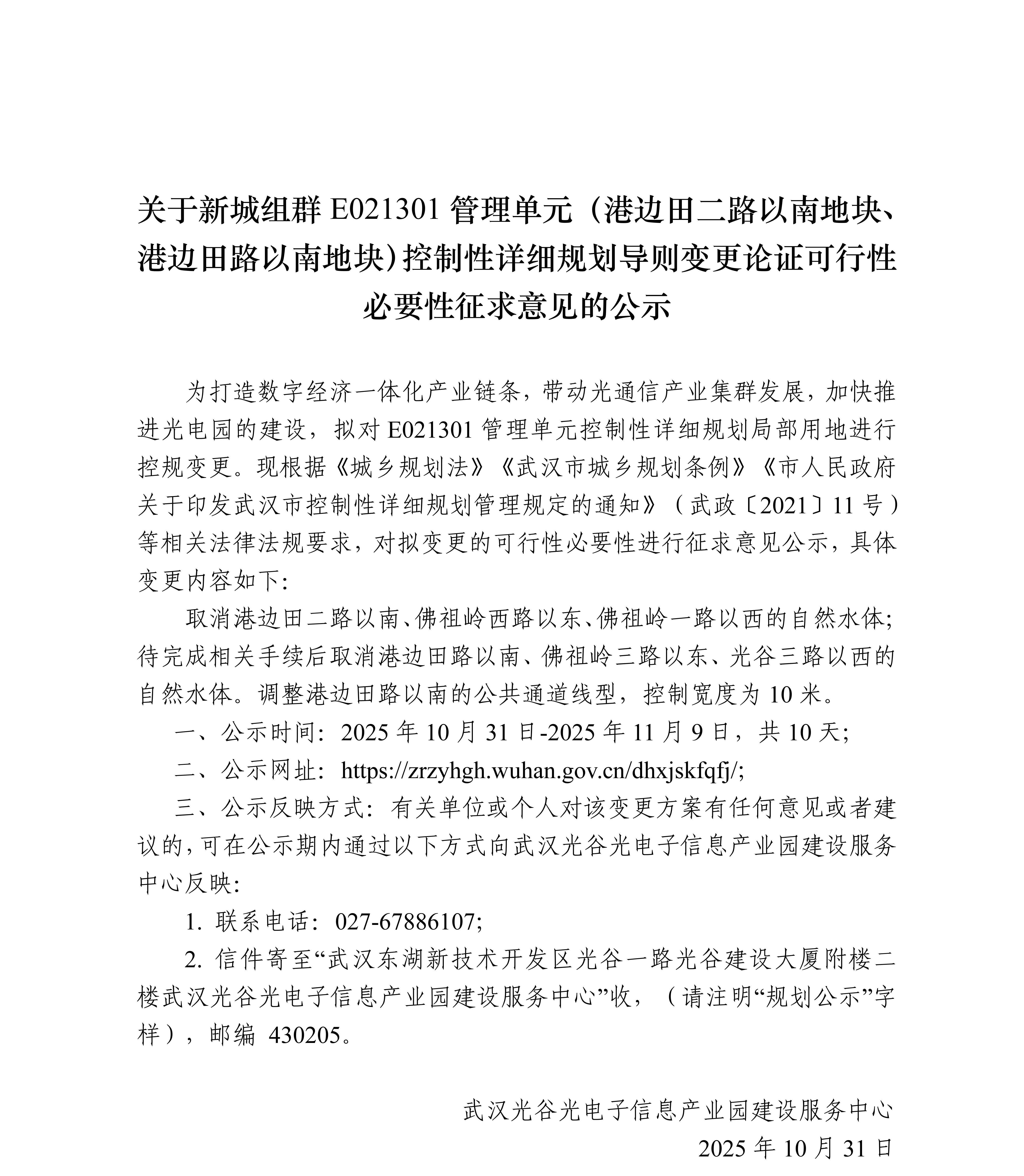 关于新城组群E021301管理单元(港边田二路以南地块、港边田路以南地块)控制性详细规划导则变更论证可行性必要性征求意见的公示