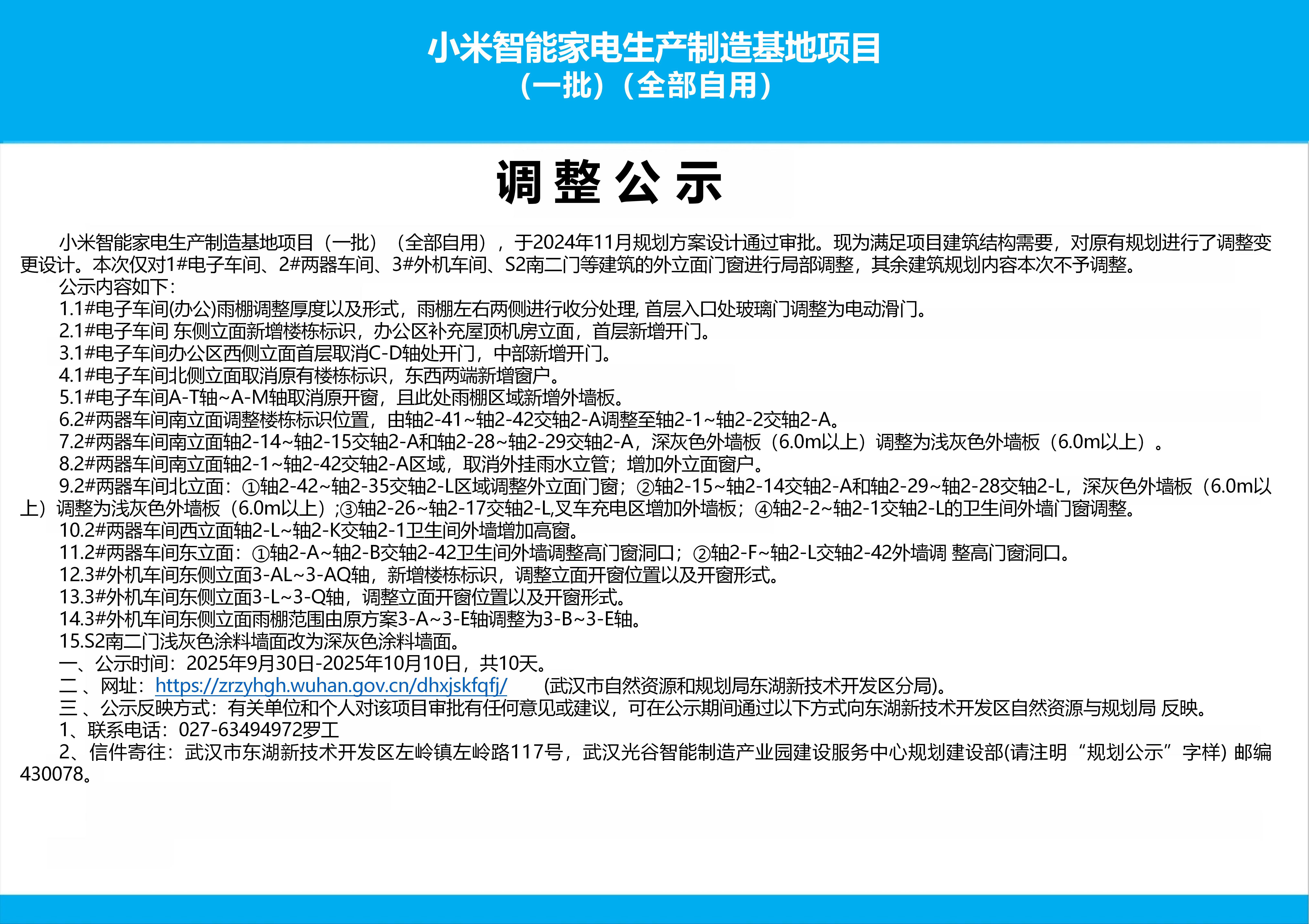 小米智能家电生产制造基地项目(一批)(全部自用)规划设计方案调整批前公示(1#、2#、3#、S2建筑)