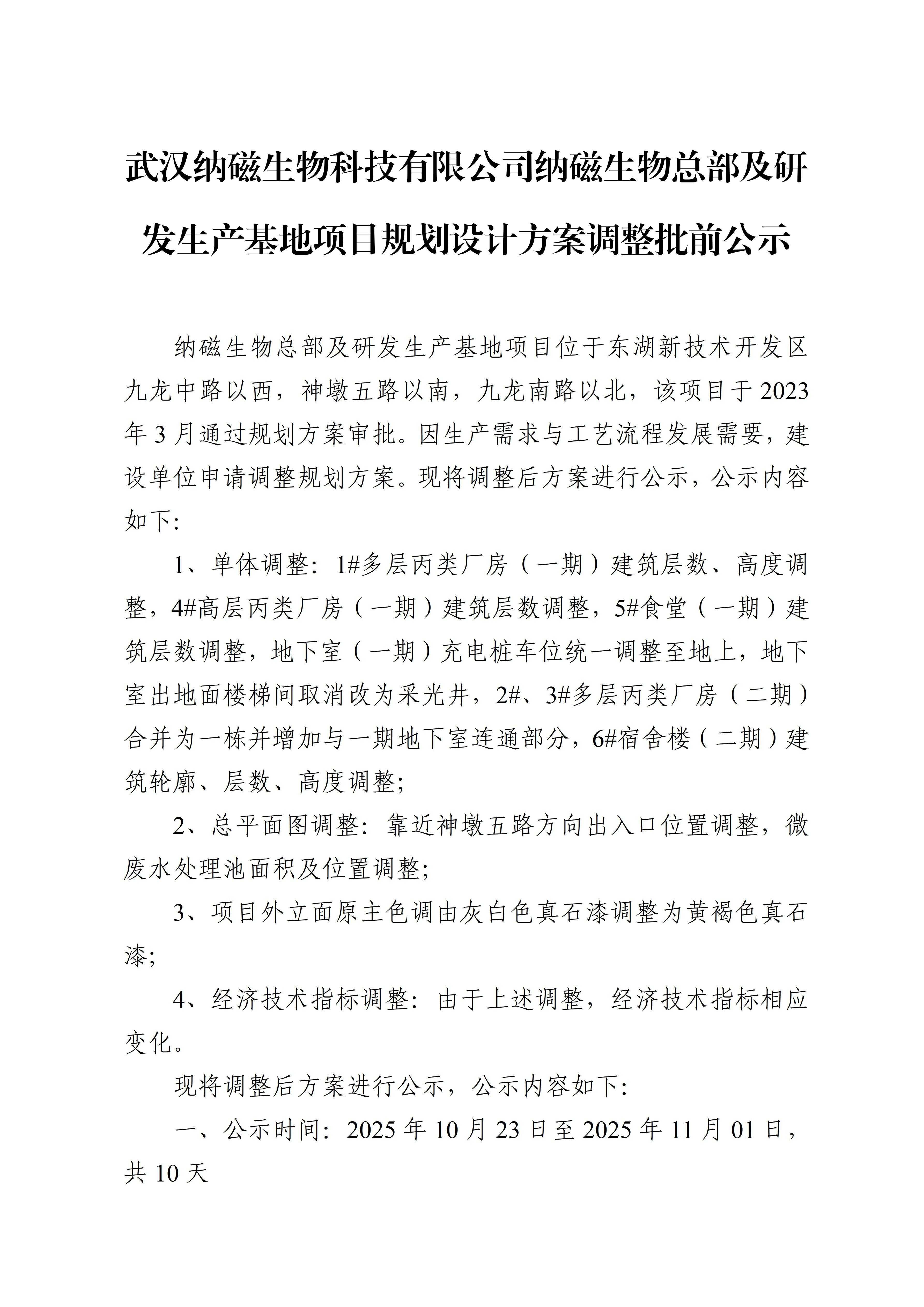 纳磁生物总部及研发生产基地项目规划设计方案调整批前公示