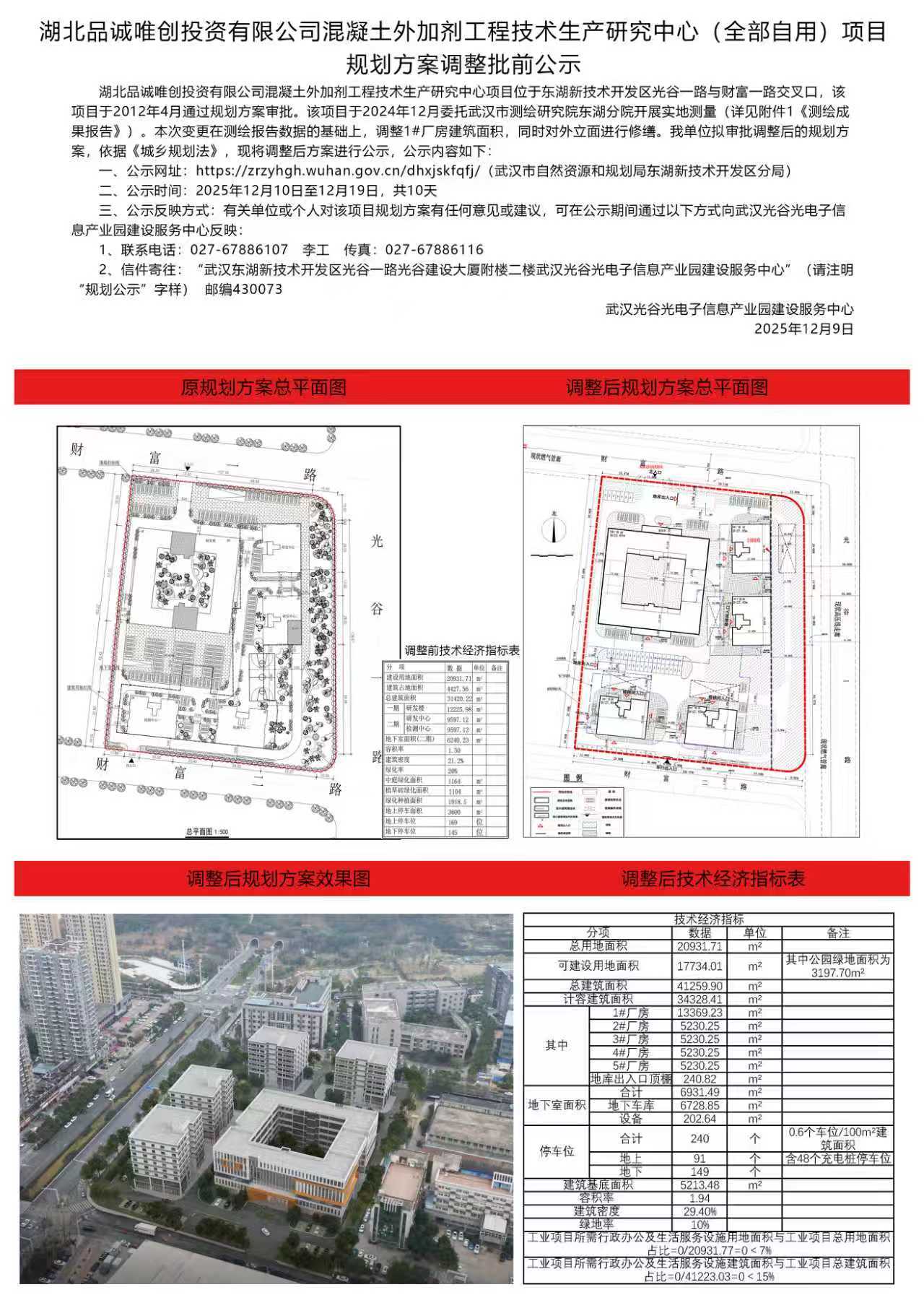 湖北品诚唯创投资有限公司混凝土外加剂工程技术生产研究中心(全部自用)项目规划方案调整批前公示