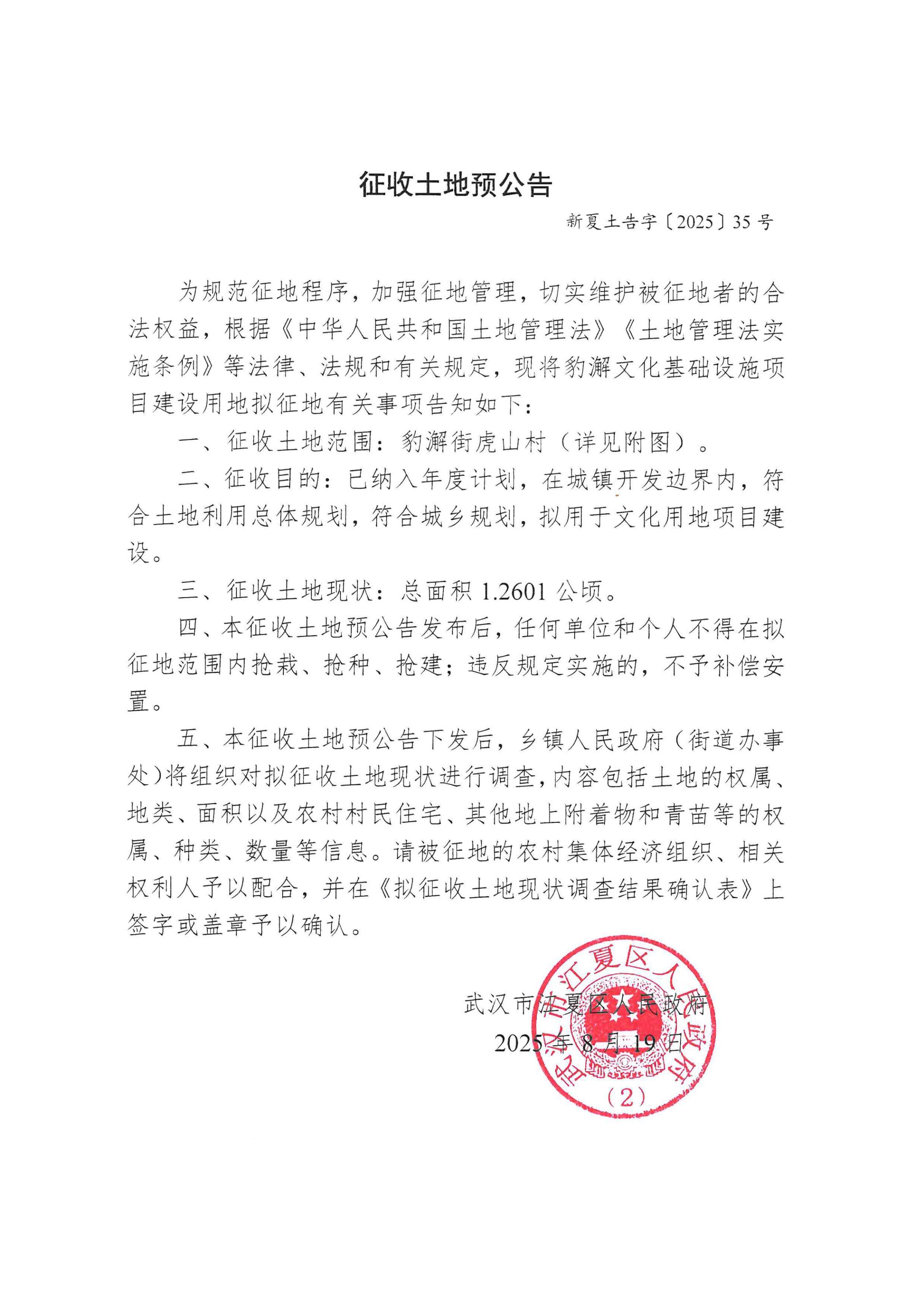 征收土地预公告(新夏土告字〔2025〕35号)