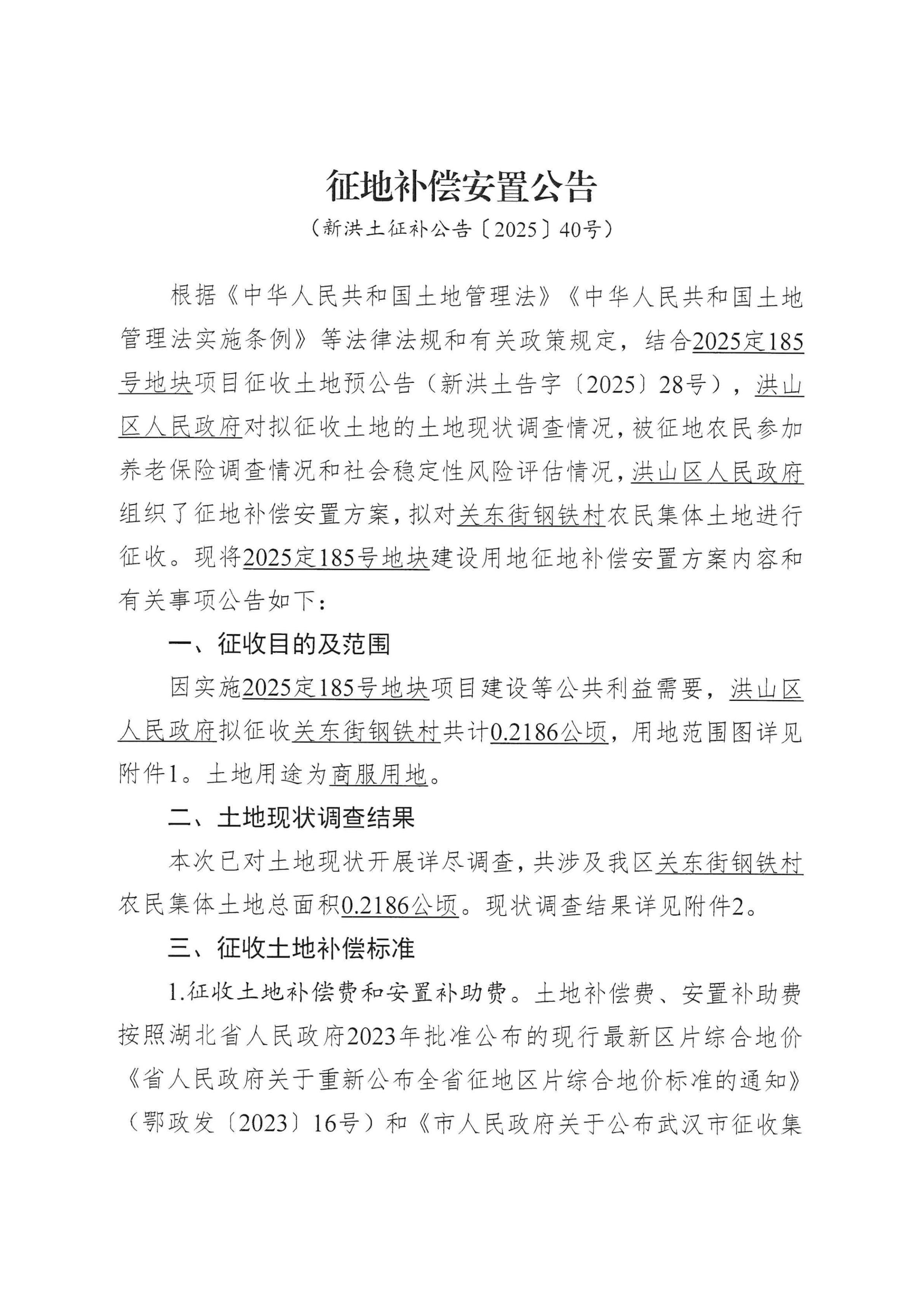 征地补偿安置公告(新洪土征补公告〔2025〕40号)