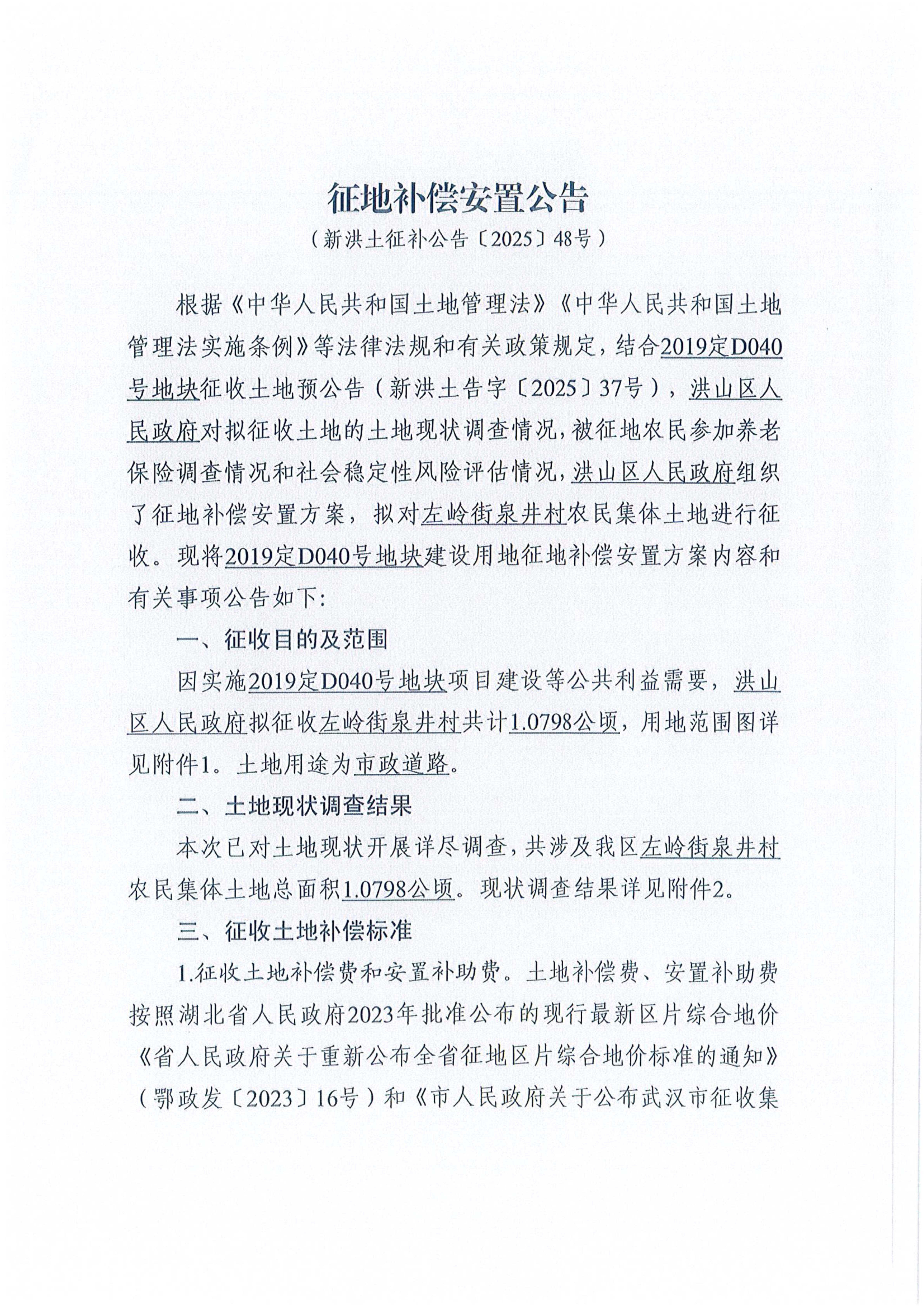 征地补偿安置公告(新洪土征补公告〔2025〕48号)