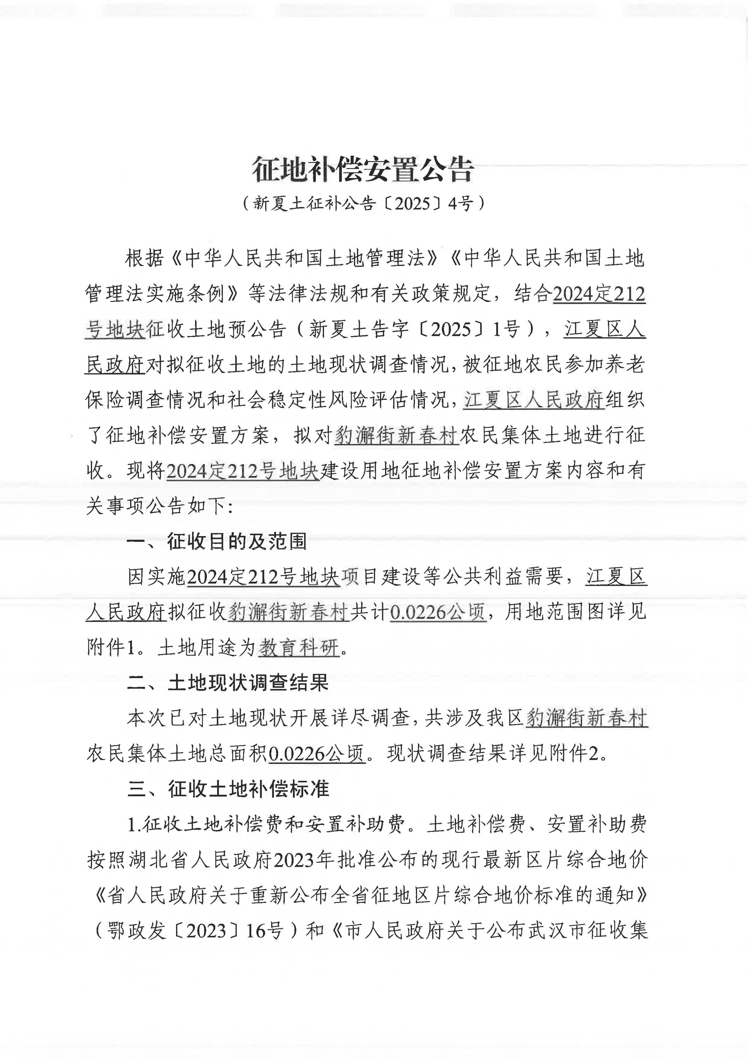 征地补偿安置公告(新夏土征补公告〔2025〕4号)