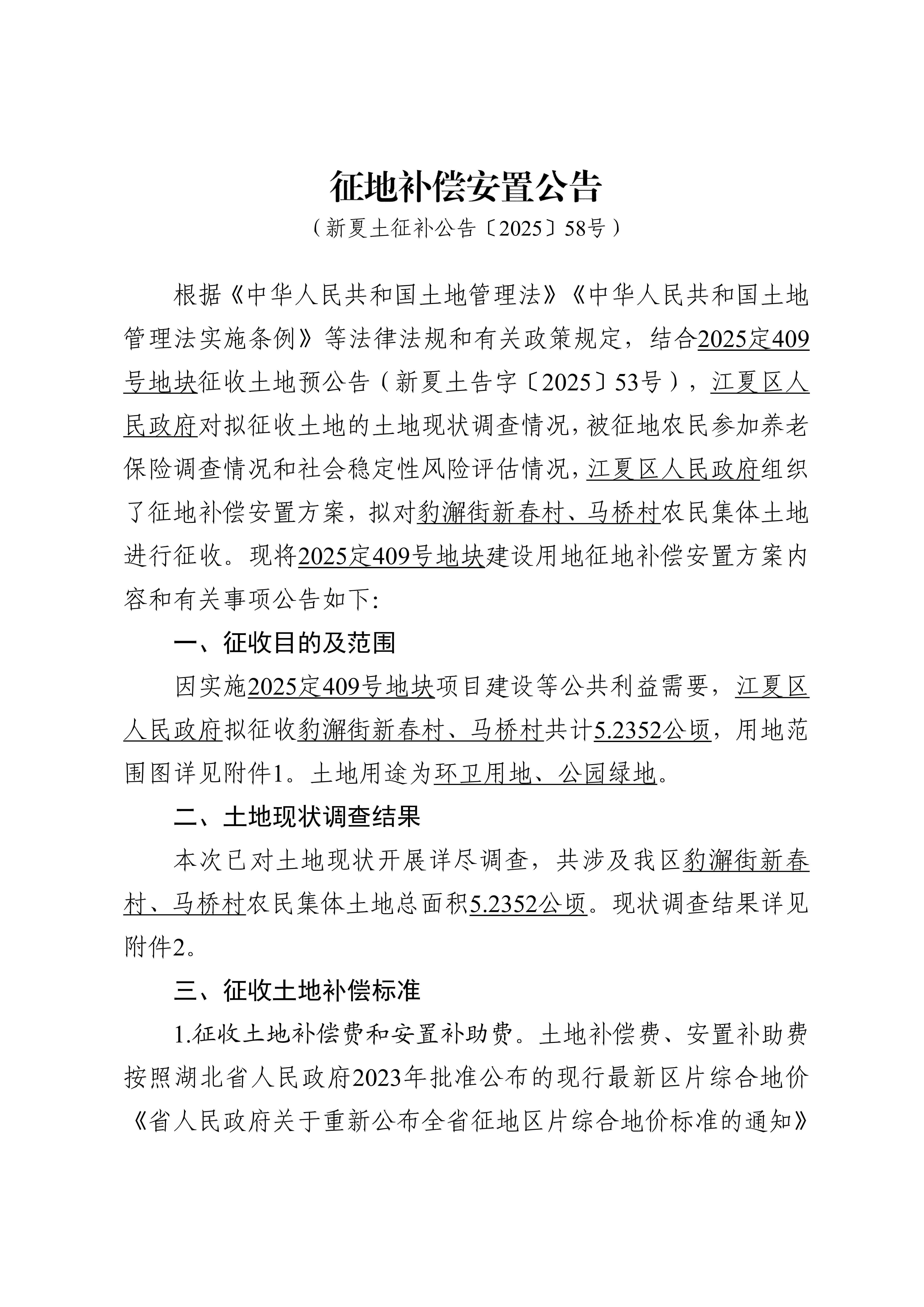 征地补偿安置公告(新夏土征补公告〔2025〕58号)