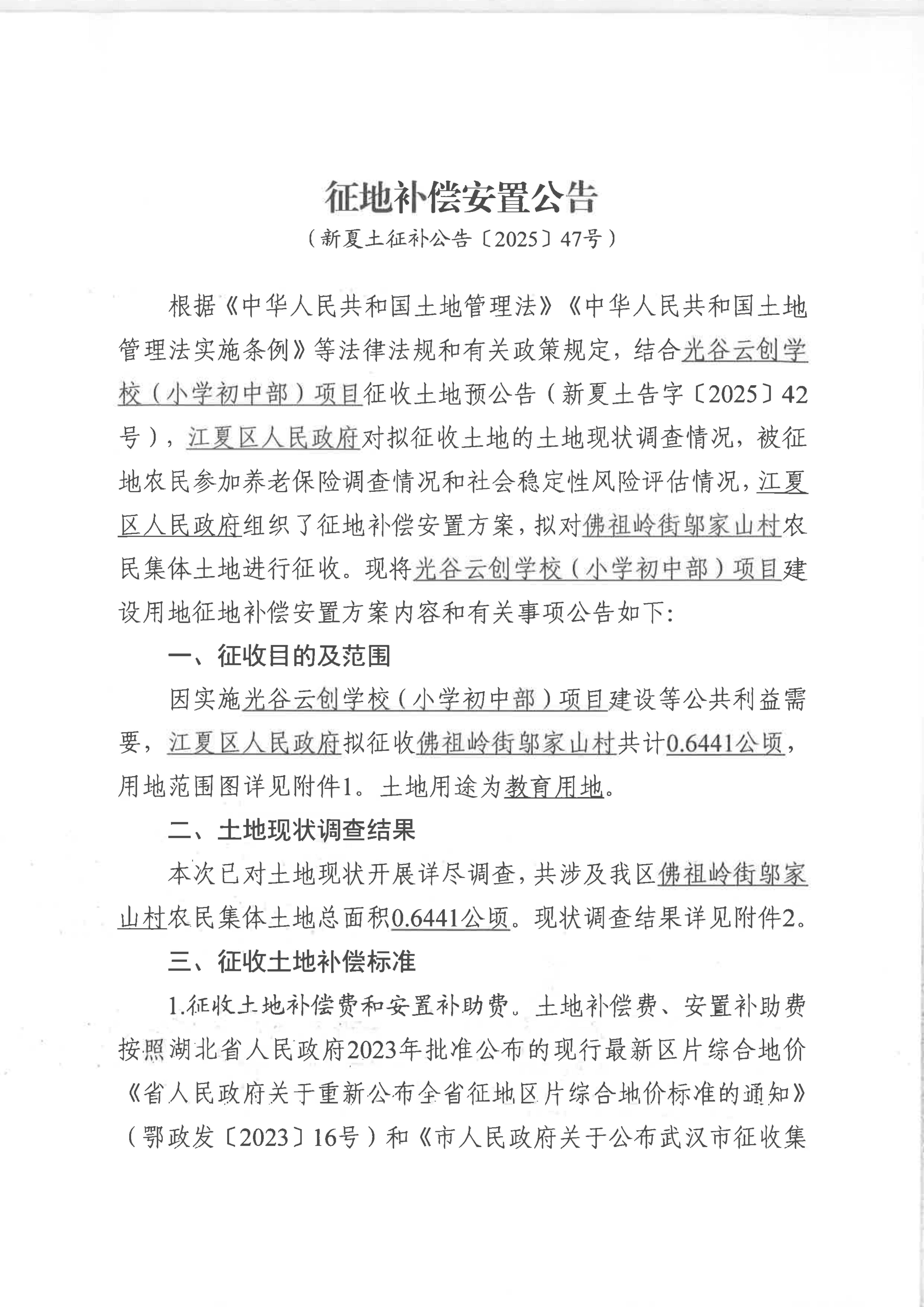征地补偿安置公告(新夏土征补公告〔2025〕47号)