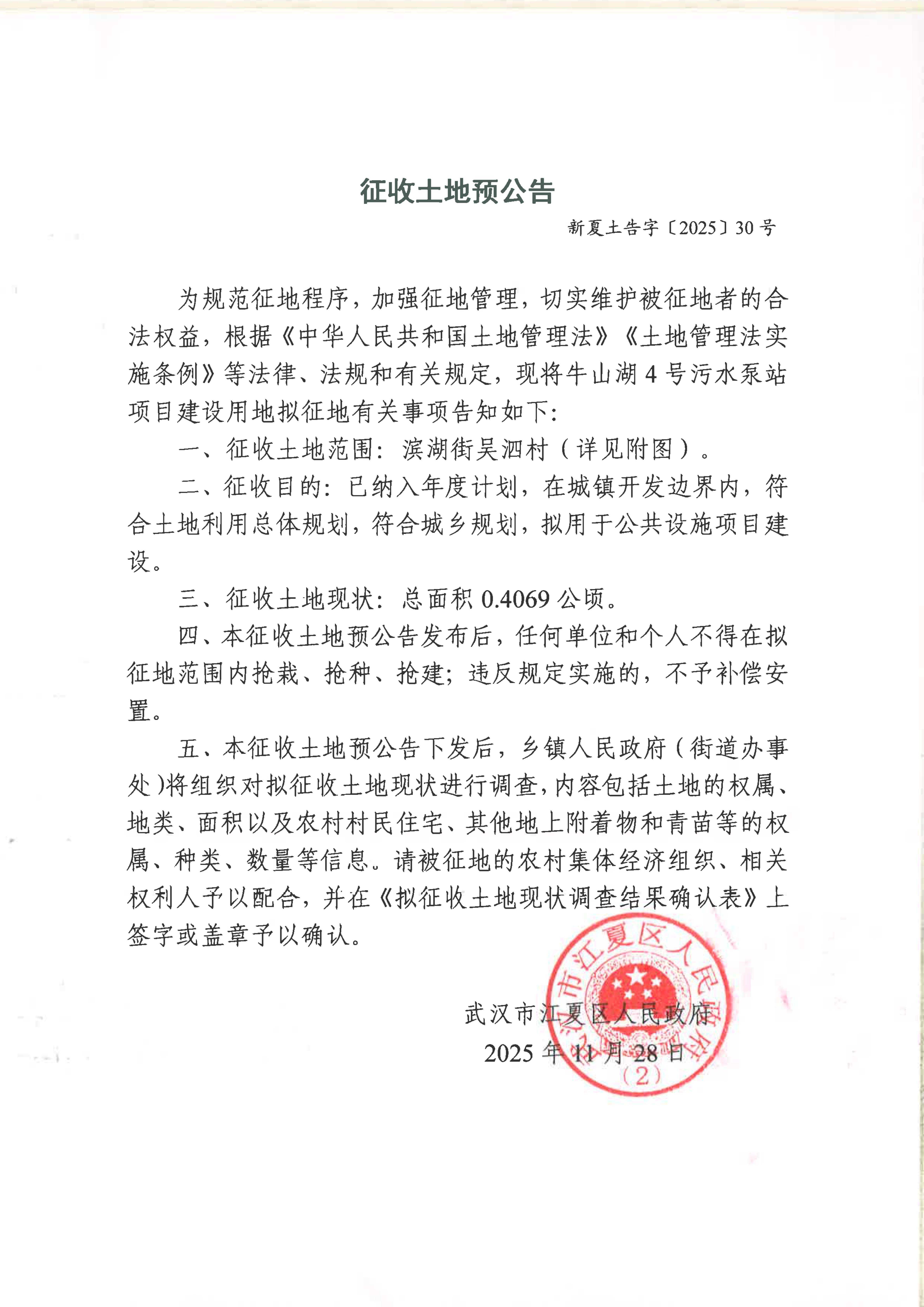 征收土地预公告(新夏土告字〔2025〕30号)