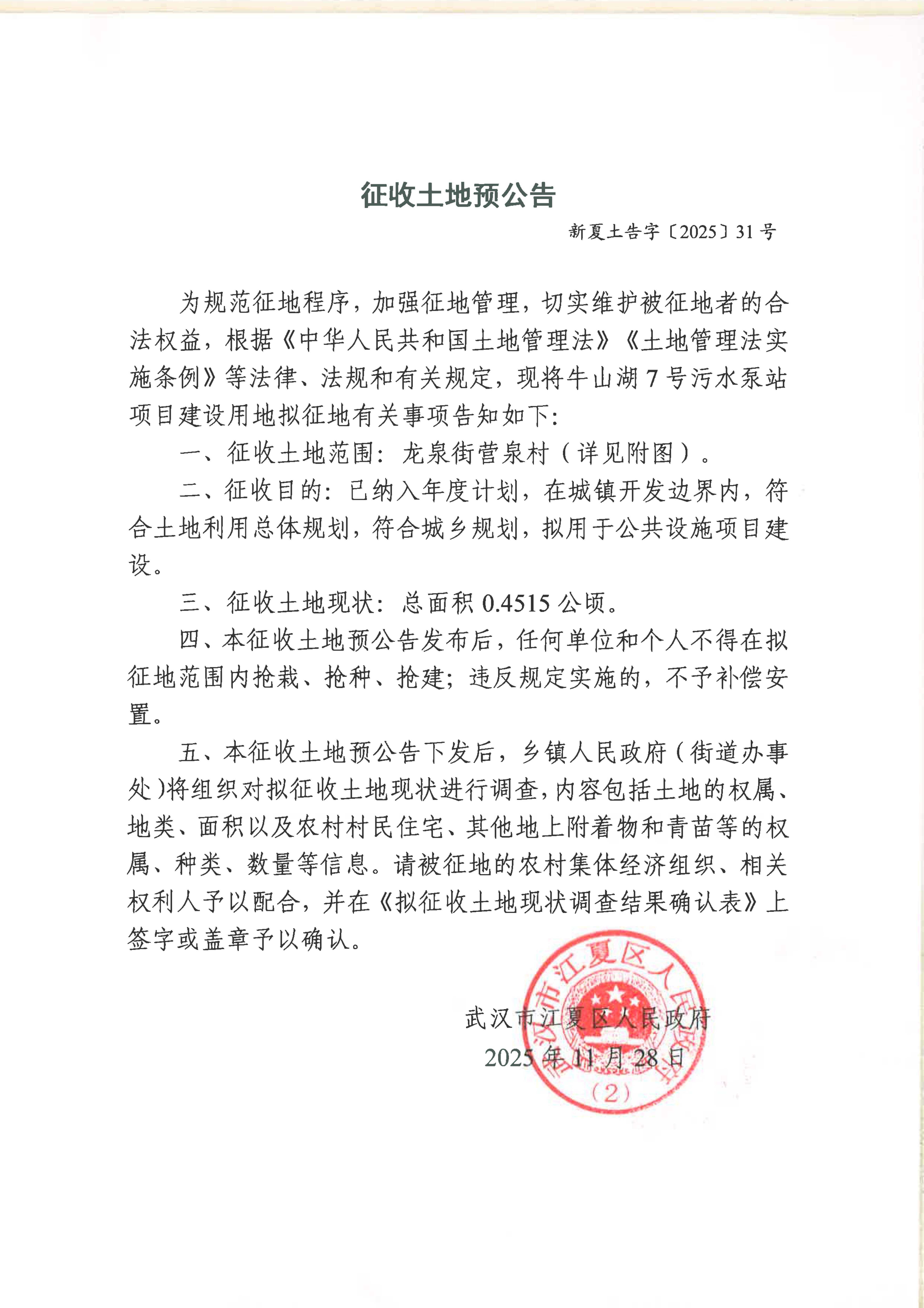 征收土地预公告(新夏土告字〔2025〕31号)
