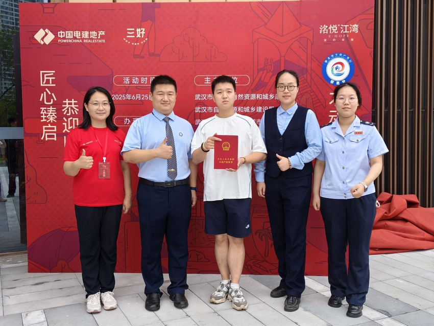 “早就听说交房现场就能办证,今天特意赶来,这会儿钥匙和房本都拿到了,真是太方便了!”在汉阳区中国电建地产·洺悦江湾小区,刚验收完新房的业主张先生手捧不动产权证书,脸上洋溢着幸福的笑容。
