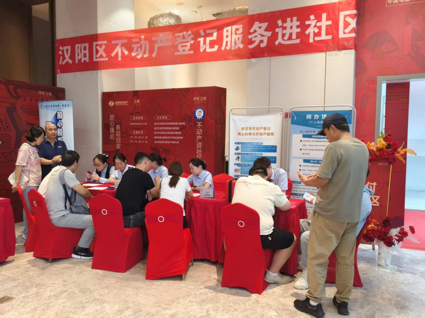 为有效保障购房者权益,缩短办证时间,6月25日,汉阳区自然资源和城乡建设局不动产登记窗口走进洺悦江湾小区开展“交房即办证”活动,为业主提供全方位、一站式登记服务。