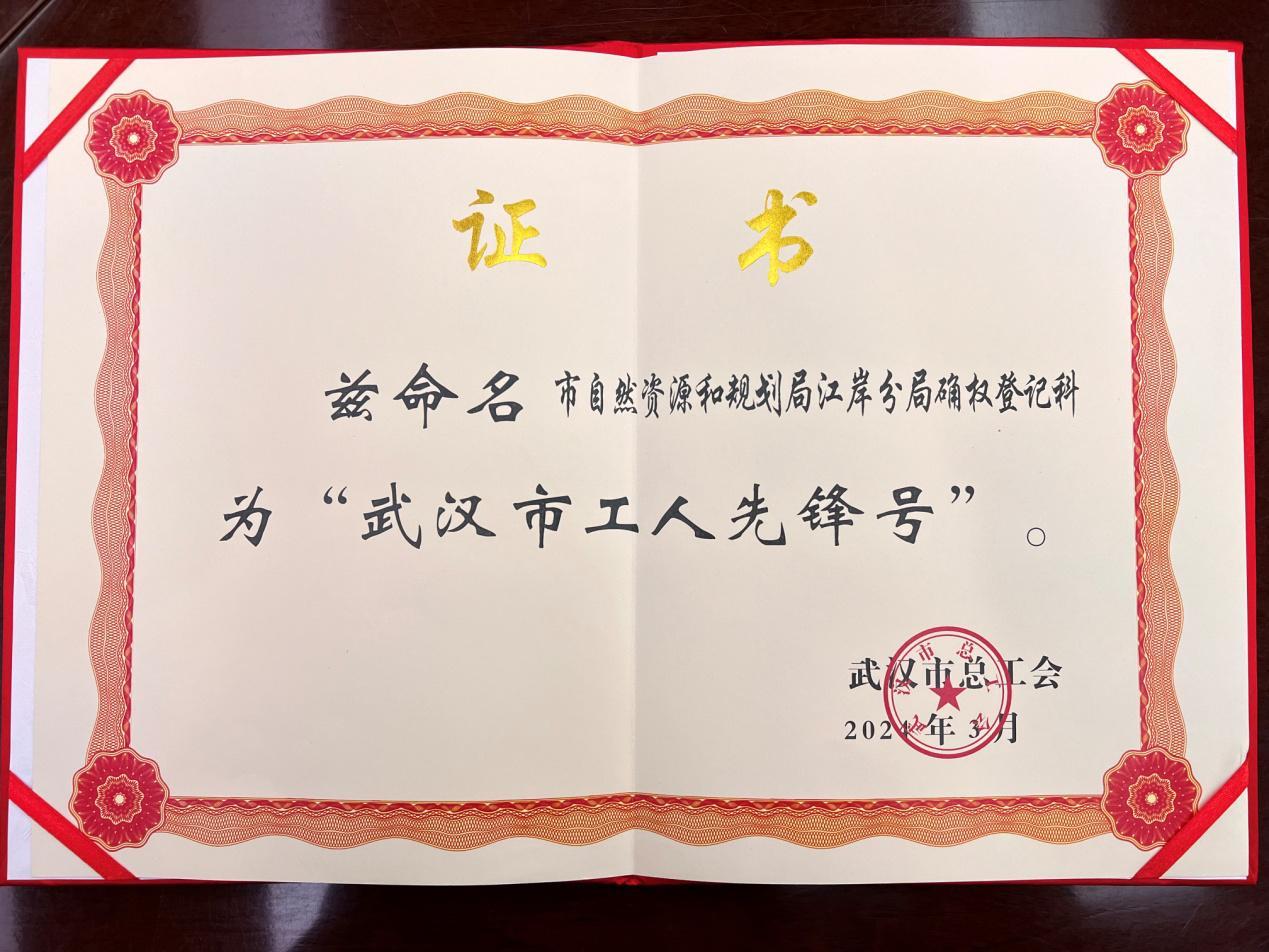 市自然资源和规划局江岸分局确权登记科不动产登记窗口荣获“武汉市工人先锋号”
