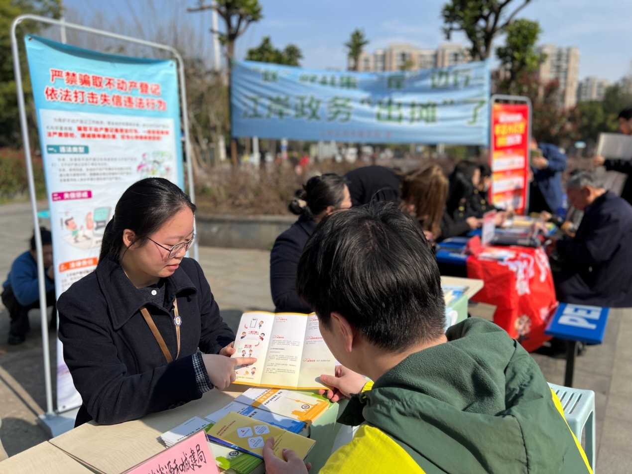 3月13日,为迎接3·15国际消费者权益日,切实维护群众不动产合法权益,提升不动产登记服务质效,江岸区自然资源和城乡建设局不动产登记窗口积极参与区行政审批局组织的专题活动,以“依法登记、诚信服务、保障权益”为主题,开展系列普法宣传与便民服务活动,把维权服务送到群众身边。