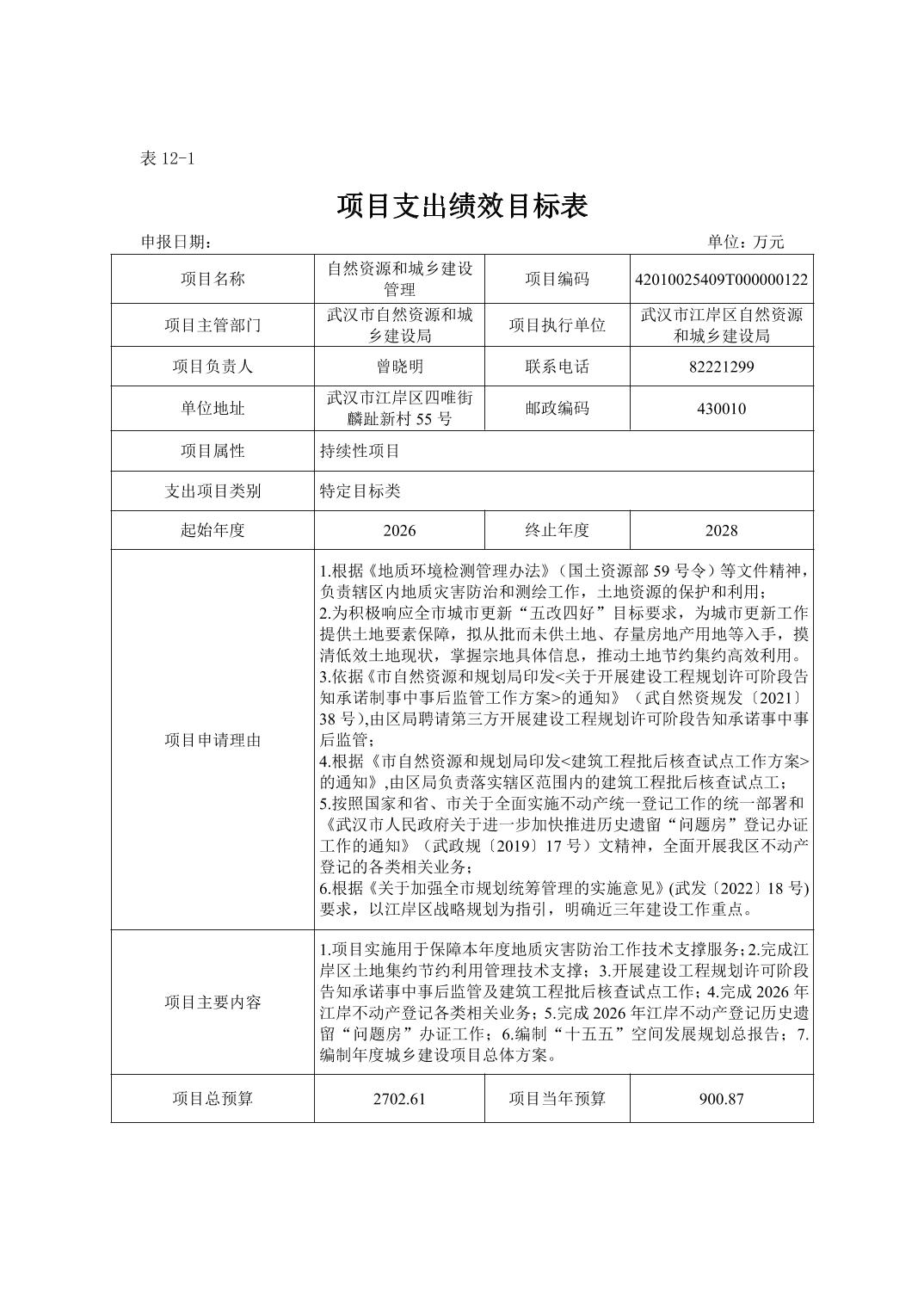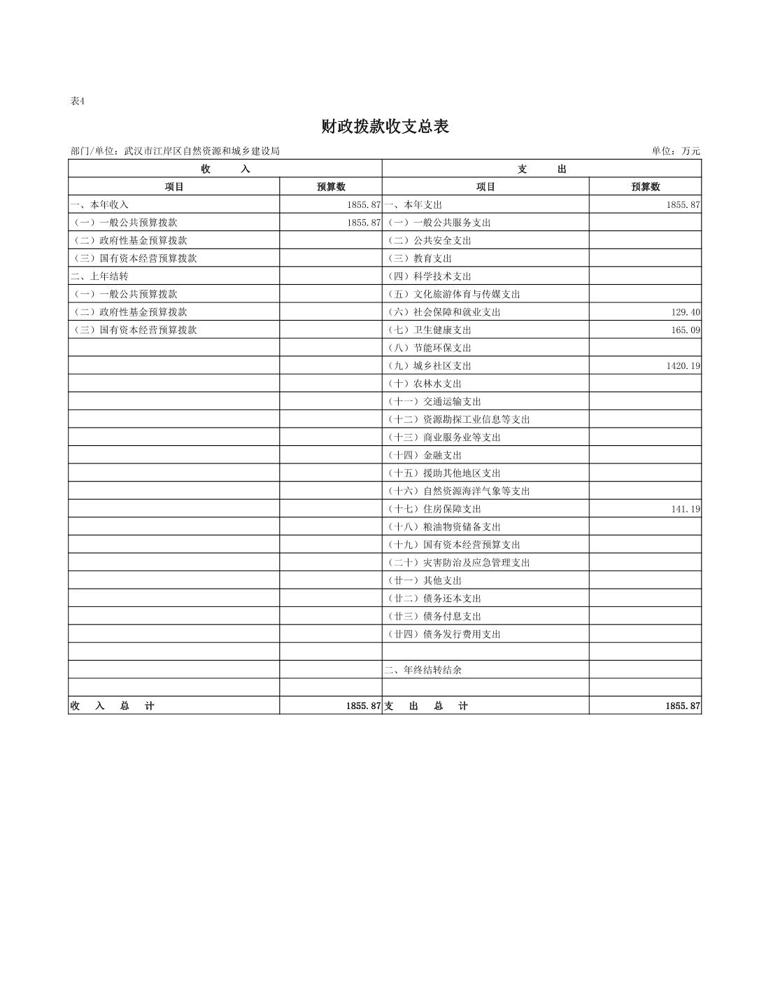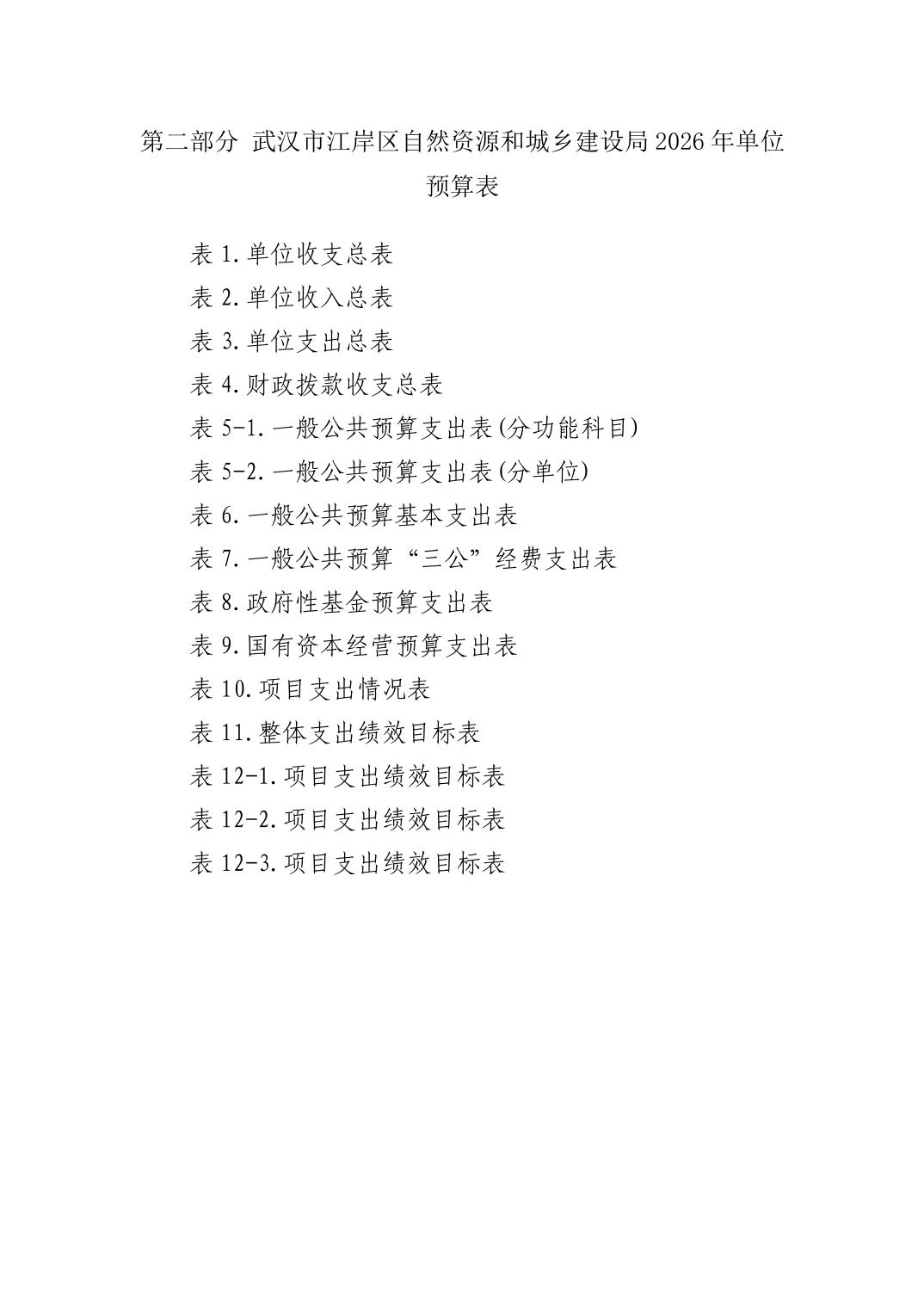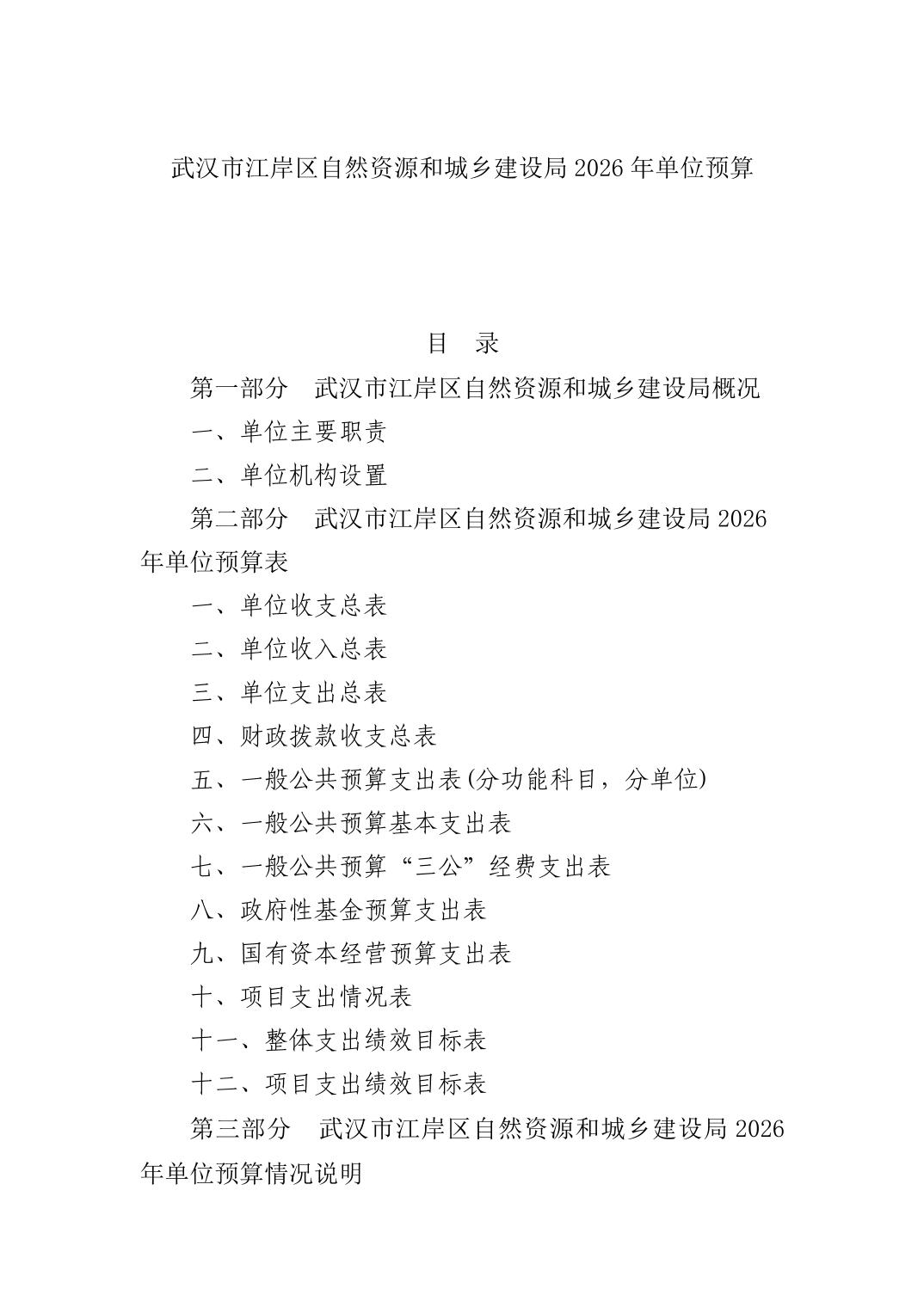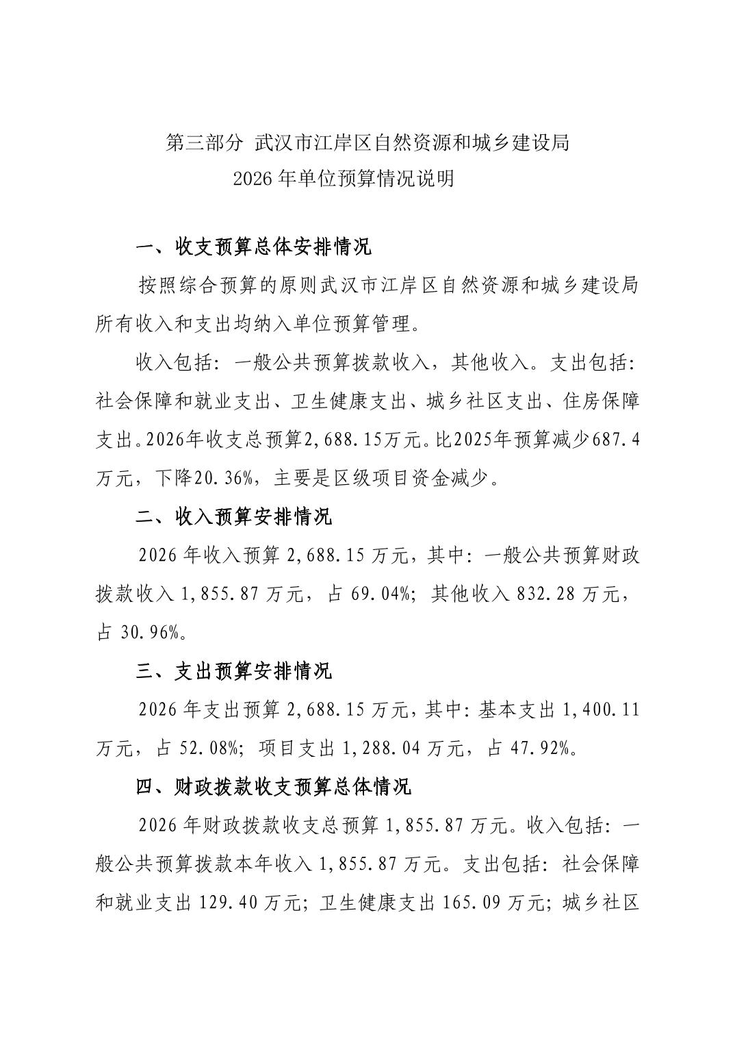 武汉市江岸区自然资源和城乡建设局2026年单位预算