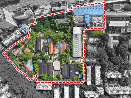 项目用地西侧与南侧与华中师范大学相邻,东侧为七二二社区。地块呈不规则矩形,用地现状为厂房建筑,场地内部整体平整。
