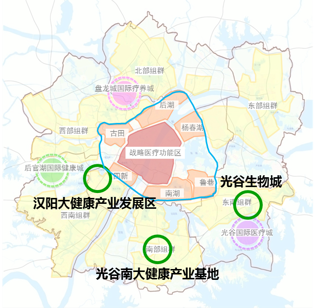 依托同济医院,建设国家重大公共卫生事件医学中心;依托长江新区国际医学创新区,建设国家医学健康研究中心;依托江夏光谷南大健康产业园,建设国家传染病临床医学试验中心、公共卫生应急演练和培训基地;依托光谷生物城,建设国家医药研发中心、生物基因及制剂研发基地;依托汉阳龙阳湖健康谷,建设国家健康大数据中心;依托环同济协和医疗服务区,建设国家综合医学中心;依托华中科技大学新建应急防控P3实验室、高端生物医学成像检测中心;依托国药集团中国生物武汉生物制品研究所,新建新冠疫苗研发实验室和生产车间综合体。