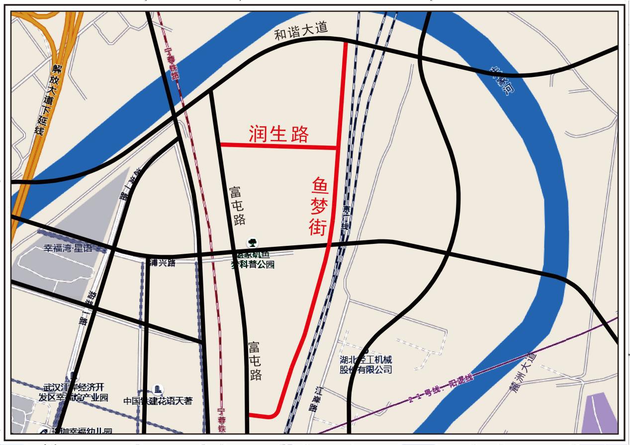 位于谌家矶街道辖区。东西走向,东起鱼梦街(拟命名),西止富屯路,长约370米,宽约15米。寓意以水润泽生态,以再生水滋养城市,既体现水厂的水质净化功能,又契合鱼梦科普公园的生态修复与生命活力主题,故名。