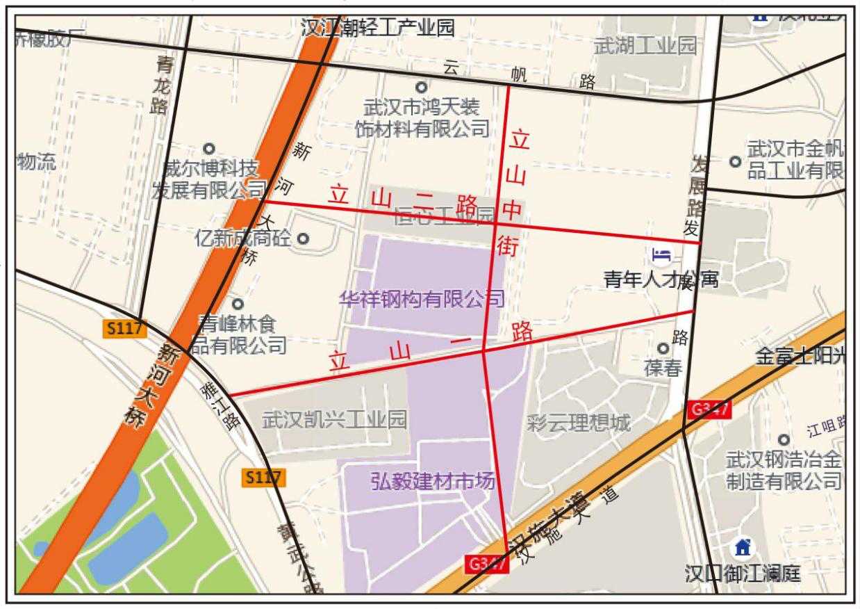 位于武湖街道辖区。南北走向,南起汉施大道,北止云帆路,长约650米,宽约20米。沿线居民习惯称为立山村,为保护地名文化印记,以“立山”序列命名,故名。