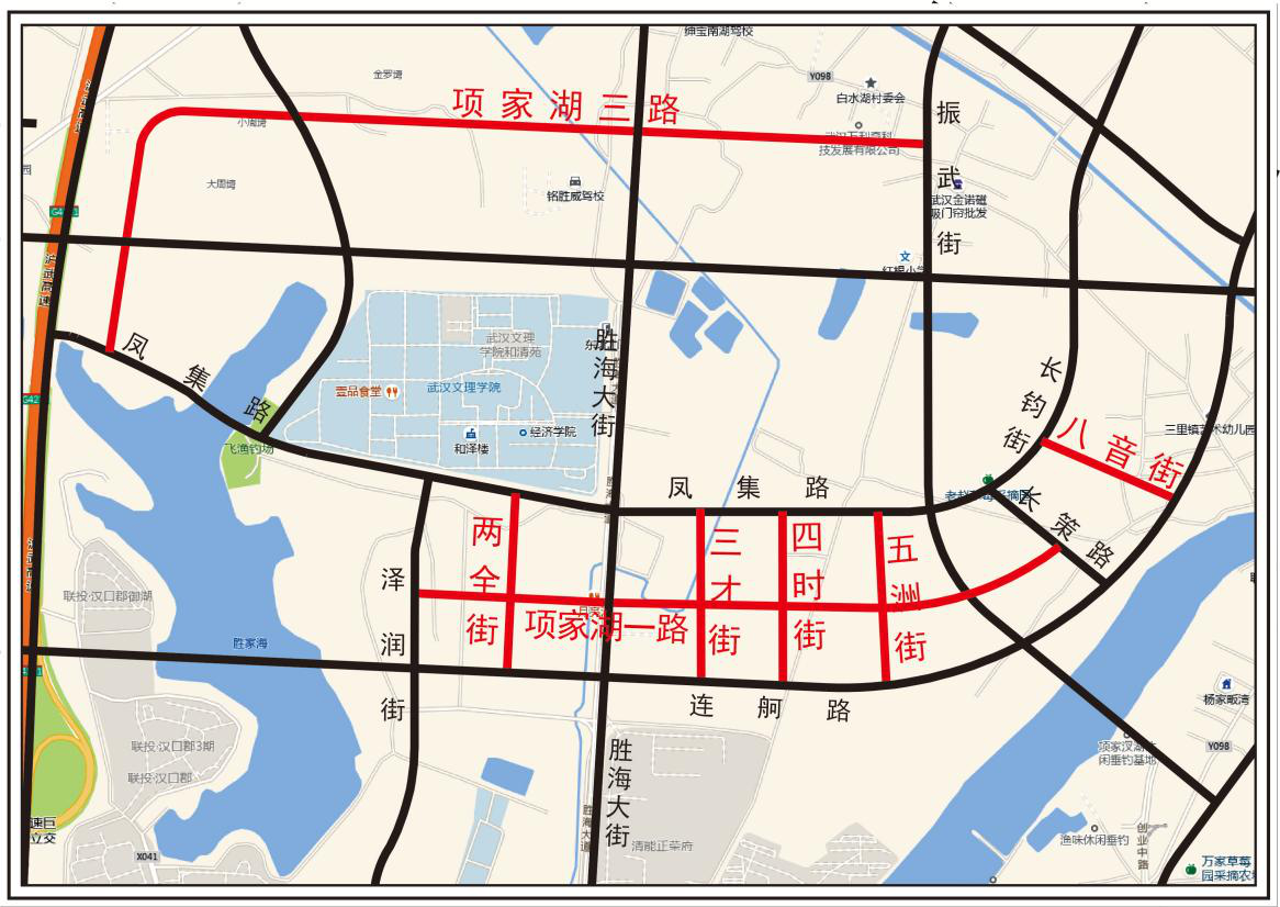 位于武湖街道辖区。东西走向,东起振武街,西止凤集路,长约2360米,宽约20米。位于项家湖周边,体现区位,以“项家湖”序列命名,故名。