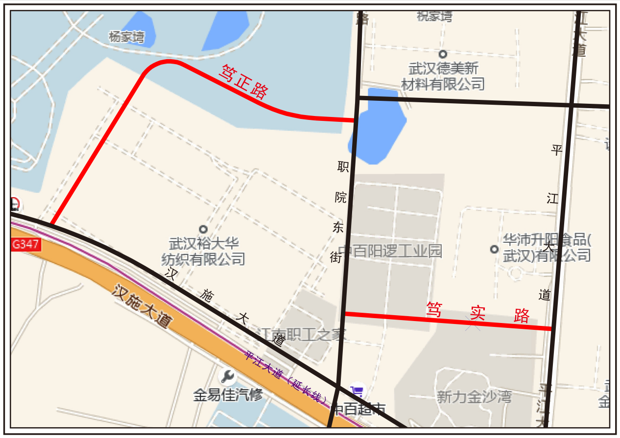 位于阳逻街道辖区。东西走向,东起职院东路,西止汉施大道,长约830米,宽约20米。以笃字派生,取自《资治通鉴》“纯诚笃正”,与产教融合片区主题呼应,故名。