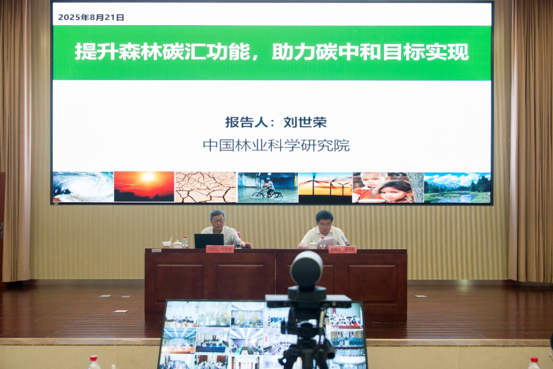 会上,刘世荣院士介绍了森林碳汇及响应全球气候变化等重大前沿领域的研究成果,为做好森林生态系统结构与功能改善、退化天然林恢复、人工林生产力维持,重点围绕森林碳汇计量,探索碳汇产品价值实现及交易机制,为全体参会干部描绘了从生态修复到林业碳汇市场化价值实现的理论方向和现实图景。