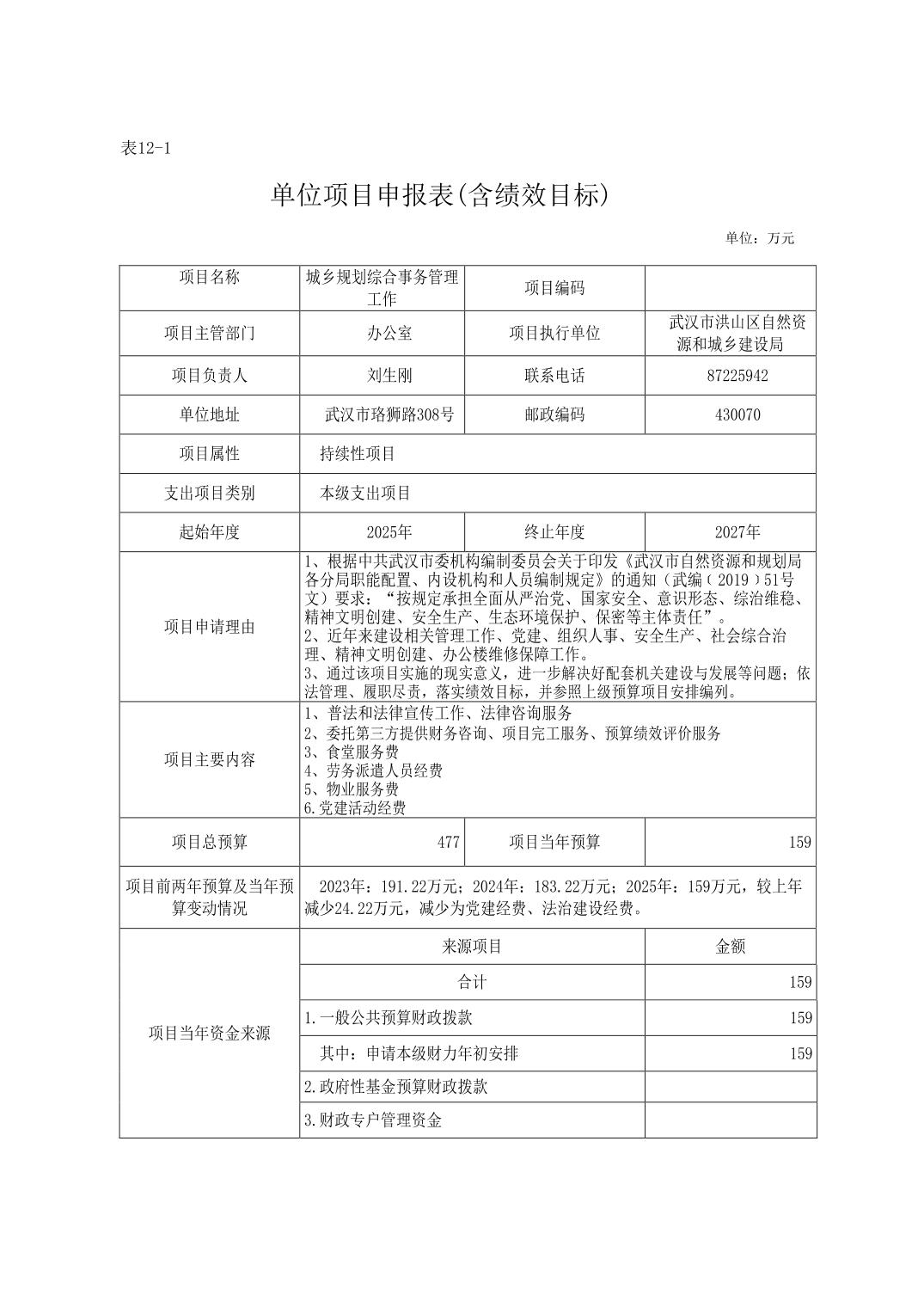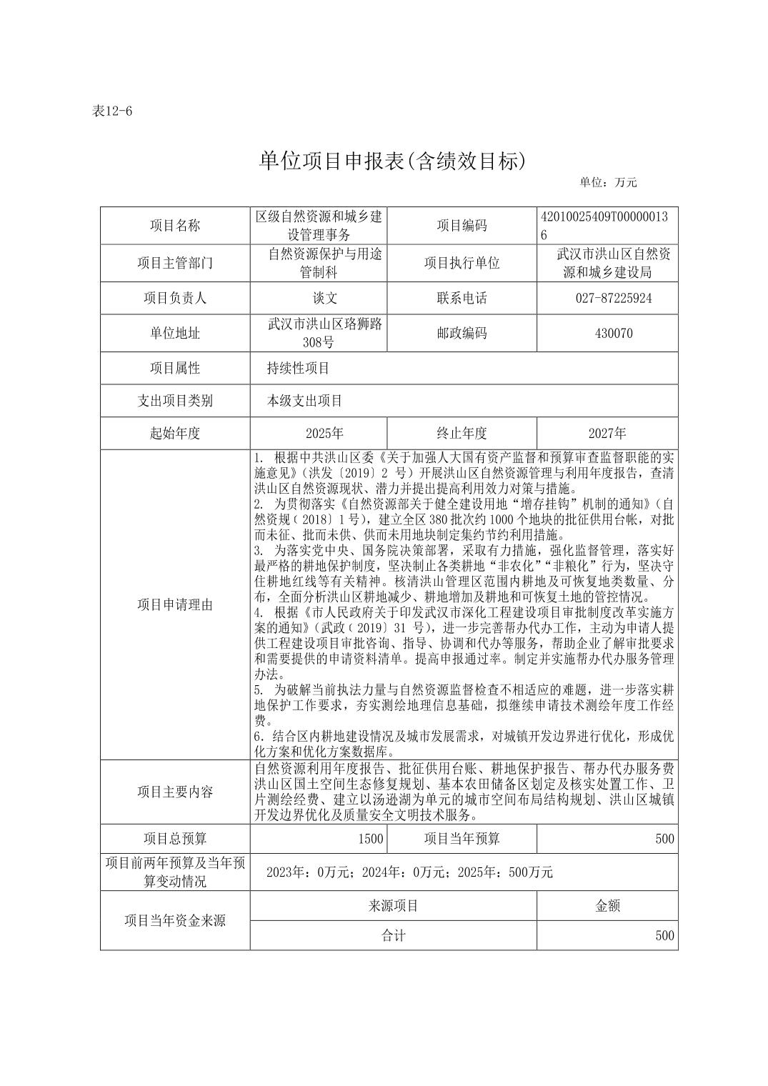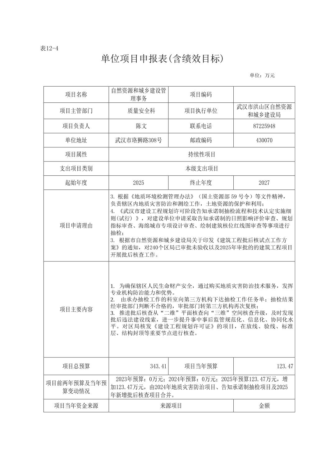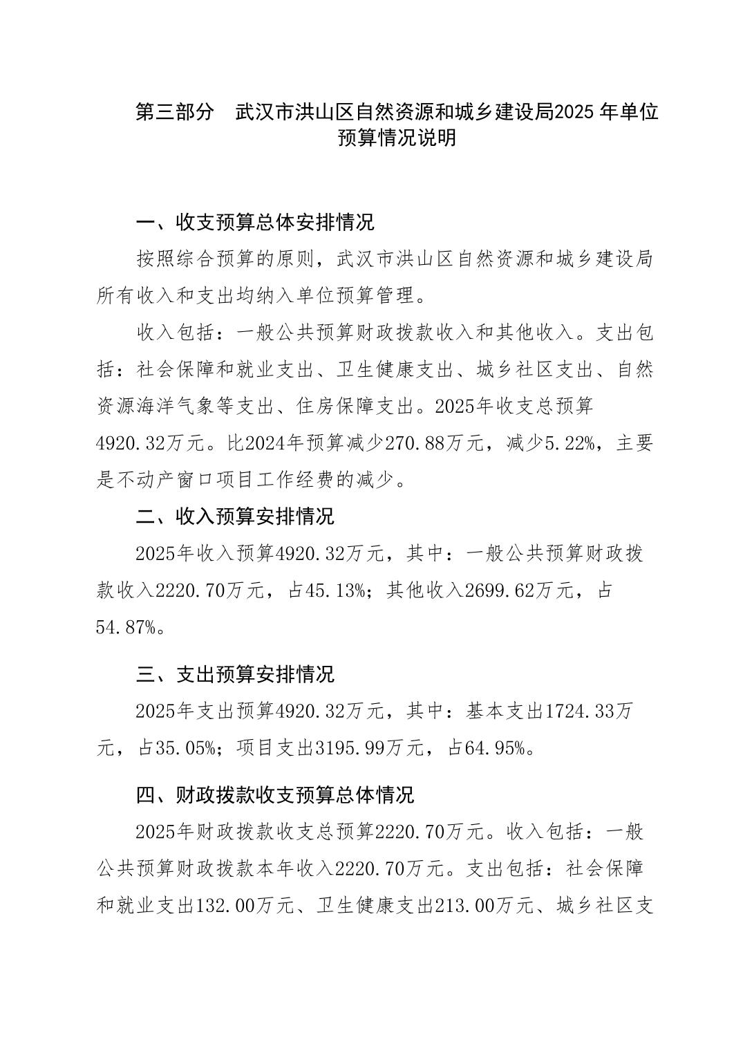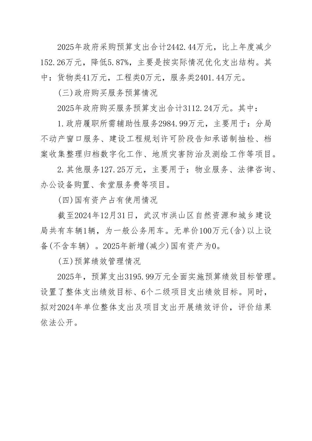 武汉市洪山区自然资源和城乡建设局2025年单位预算