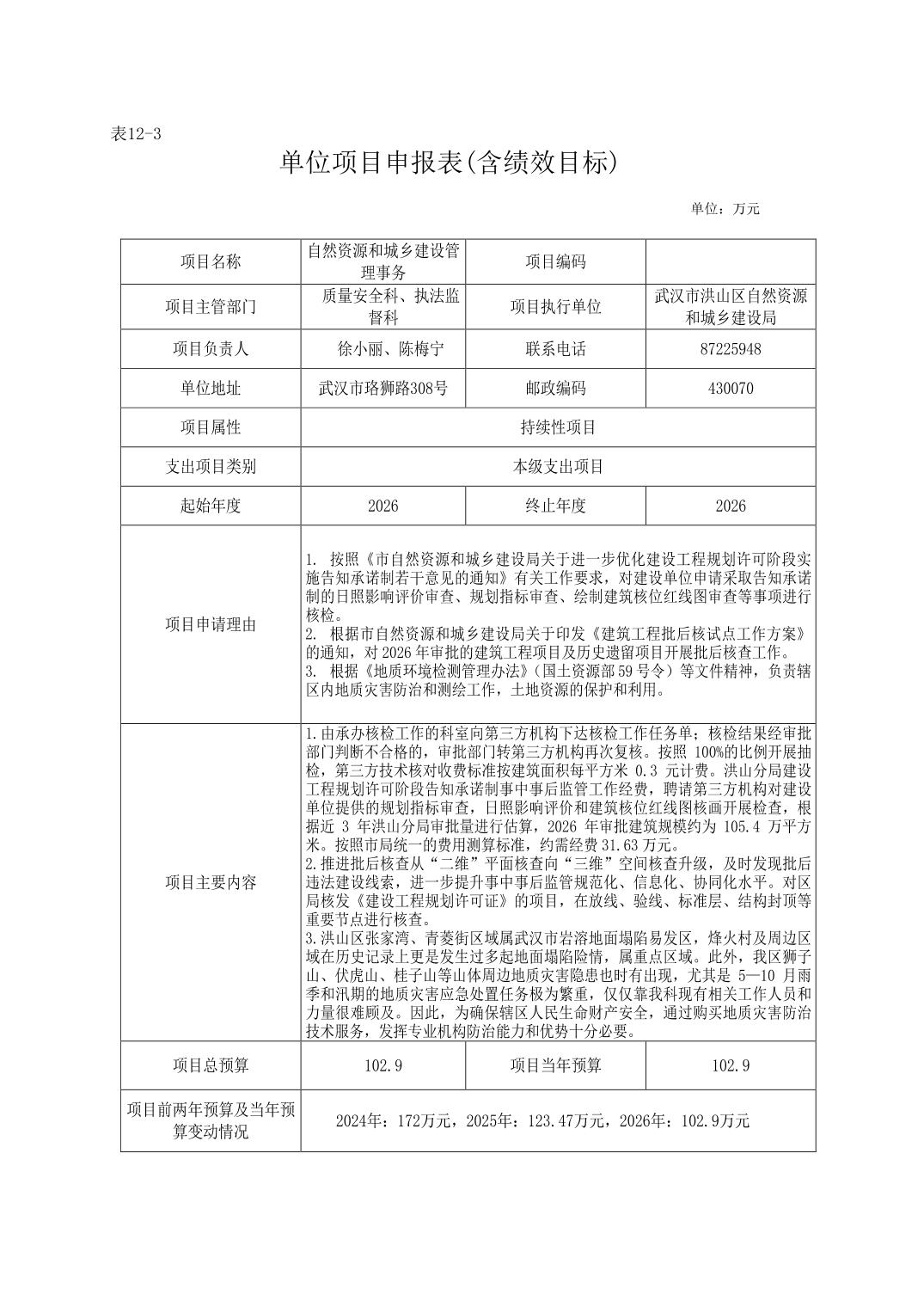 武汉市洪山区自然资源和城乡建设局2026年单位预算