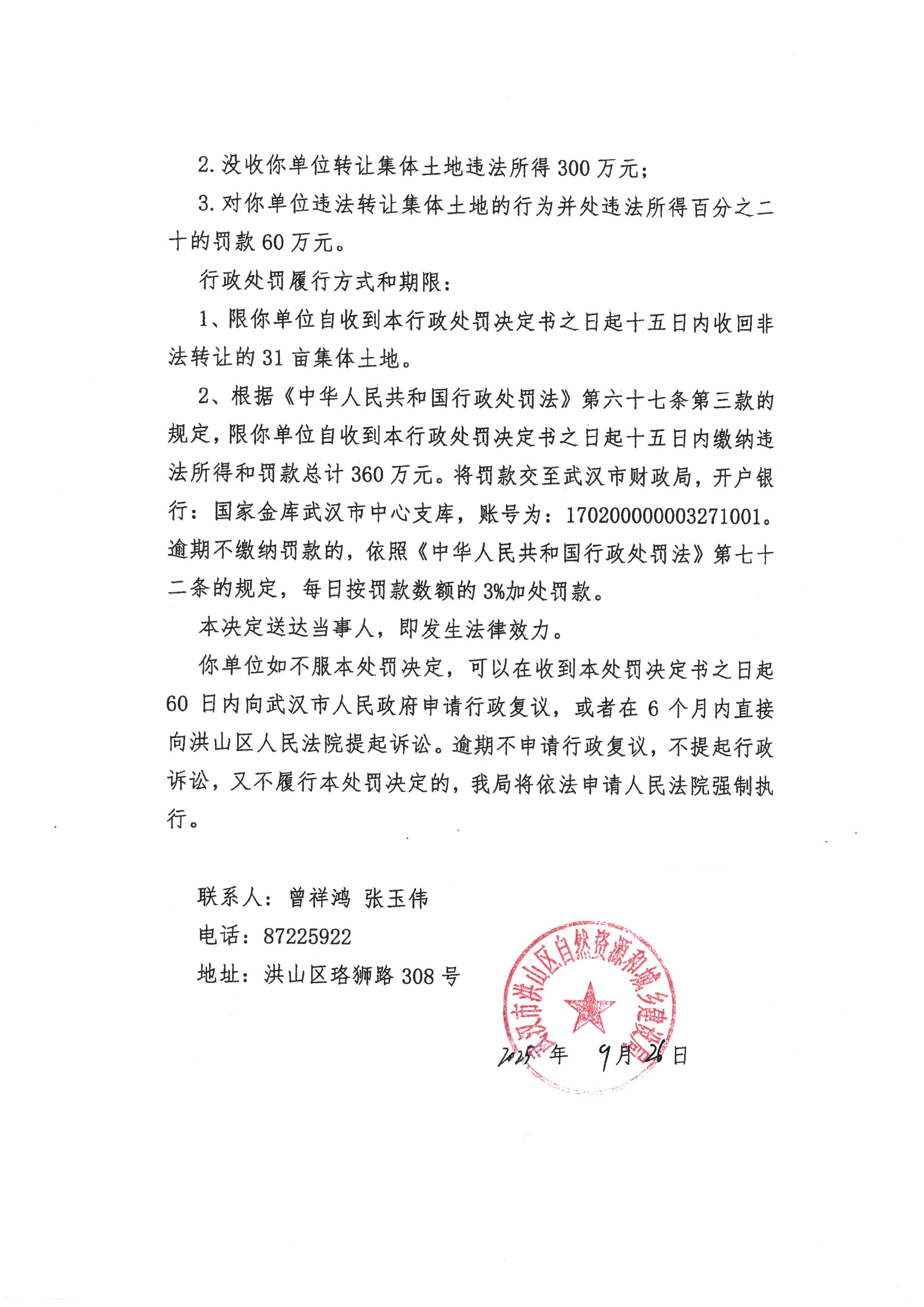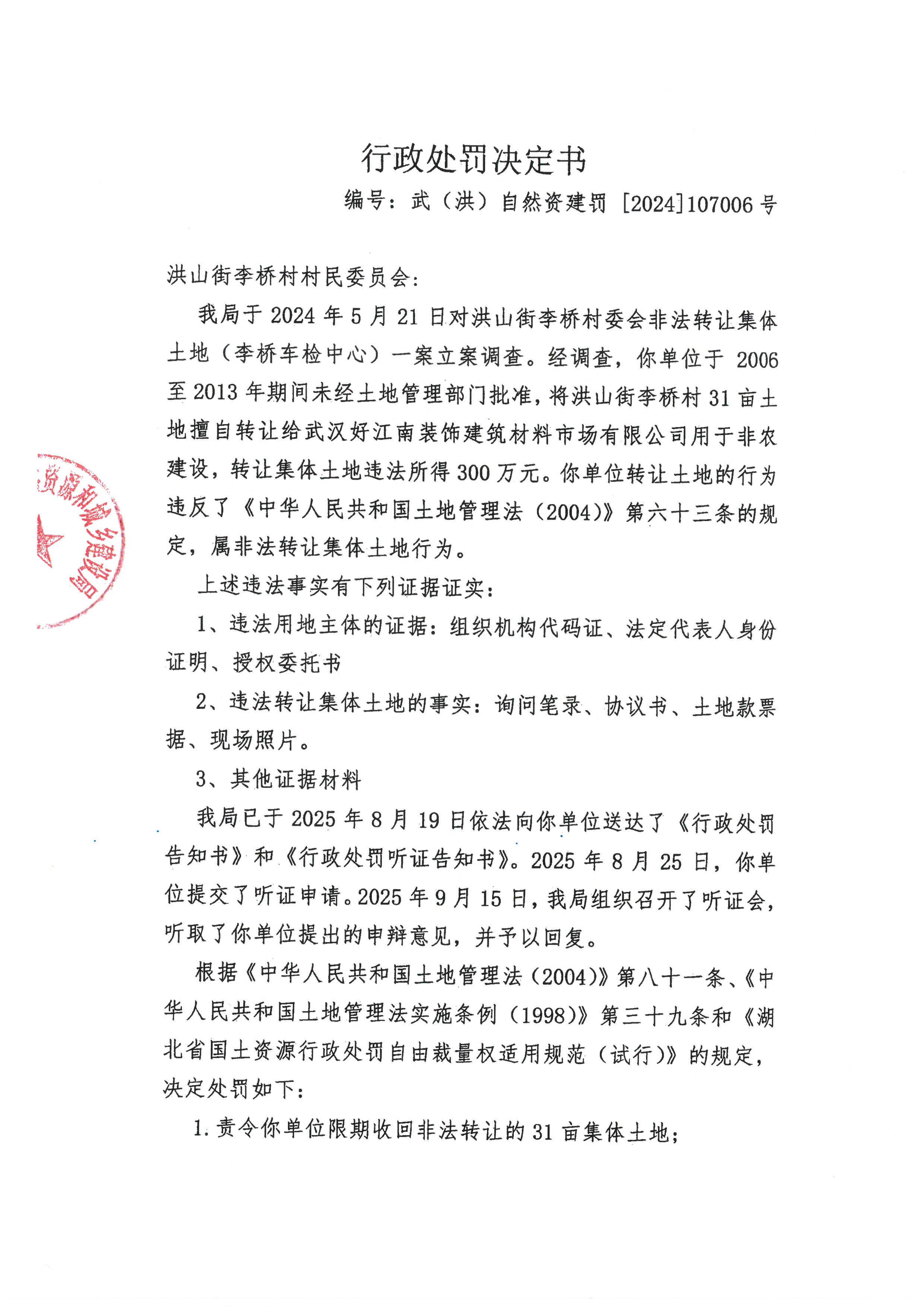 洪山街李桥村村民委员会(武汉好江南装饰建筑材料市场有限公司)行政处罚决定书