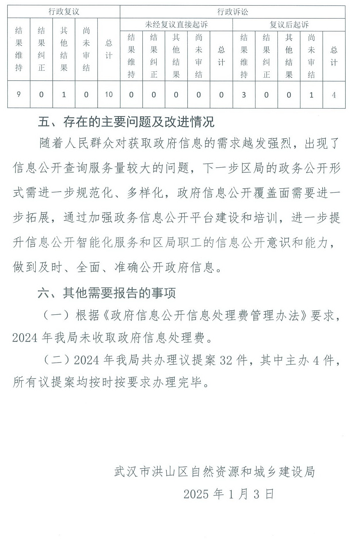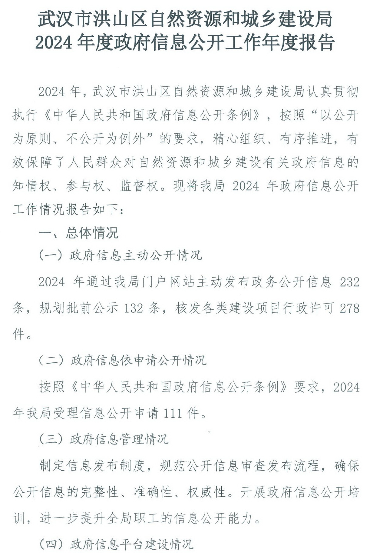 武汉市洪山区自然资源和城乡建设局 2024 年度政府信息公开工作年度报告