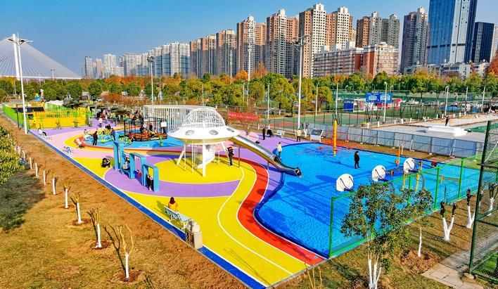 彩色沙池、飞碟乐园、智能健身长廊、体育中考训练场……12月24日,总面积2400平方米的武昌江滩体育公园正式建成开放,周边居民又多了一个遛娃健身的好去处。