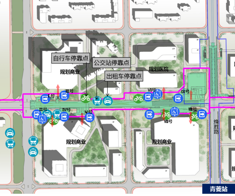 ▲ 12号线青菱站交通设施衔接方式示意图