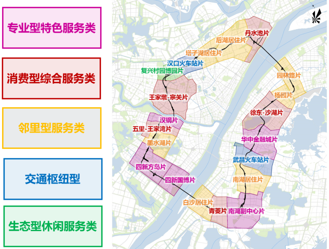 按照“支撑主城功能内核打造、强化地铁站点驱动”为思路,耦合环线区域特征,以轨道站点为锚点,匹配武汉多中心城市框架,对接主体功能区规划要求,促进站点周边服务功能集聚,并实施差异化“TOD”开发模式,打造多个地铁综合新中心、特色新中心、邻里新中心;同时联系主城区与新城区衔接或延伸的活动地带,引导青年住宅、研发孵化产业、地铁小镇等的建设与集聚,打造“地铁城市”新格局。
