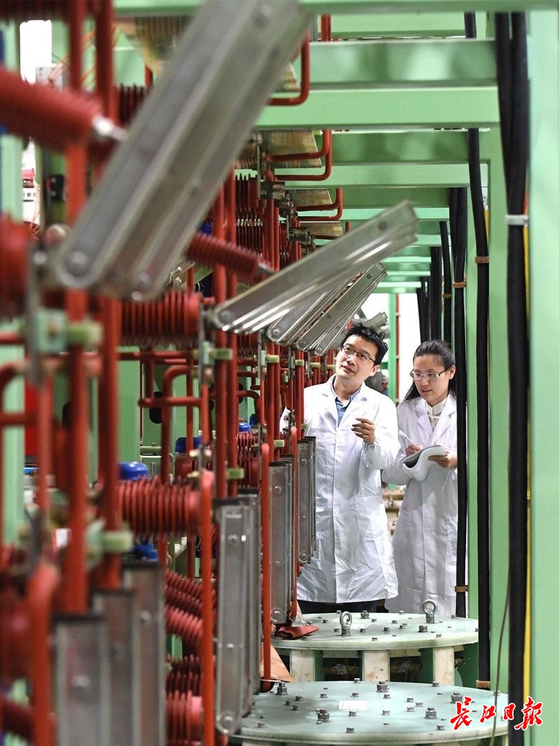 科研人员在国家脉冲强磁场科学中心电源大厅做实验前检查。长江日报记者高勇 摄