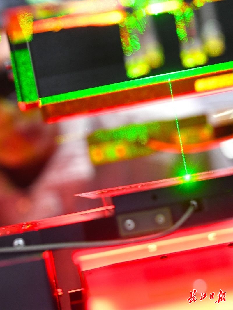 华工激光技术人员在测试载板成品缺陷激光标识设备。长江日报记者周超 摄