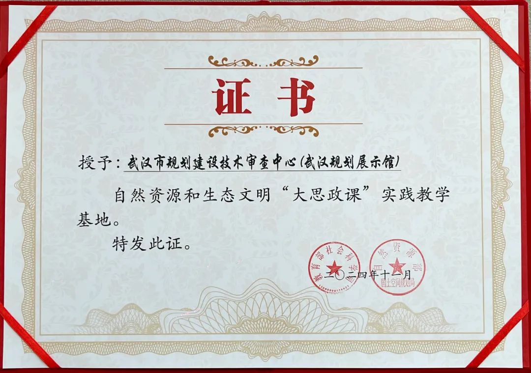 为全面贯彻落实党的二十届三中全会精神,推动习近平生态文明思想实践成果同新时代高校思政课教育教学融合发展,讲述美丽中国故事、展示现代化强国蓝图,自然资源部国土空间规划局联合教育部社会科学司、中央宣传部宣传舆情研究中心、中国自然资源报社、自然资源部国土空间规划研究中心,在2024年全国国土空间规划展示年会上公布了首批45家自然资源和生态文明“大思政课”实践教学基地和“学习强国·i自然”学习园地建设名单,武汉规划展示馆成功入选。