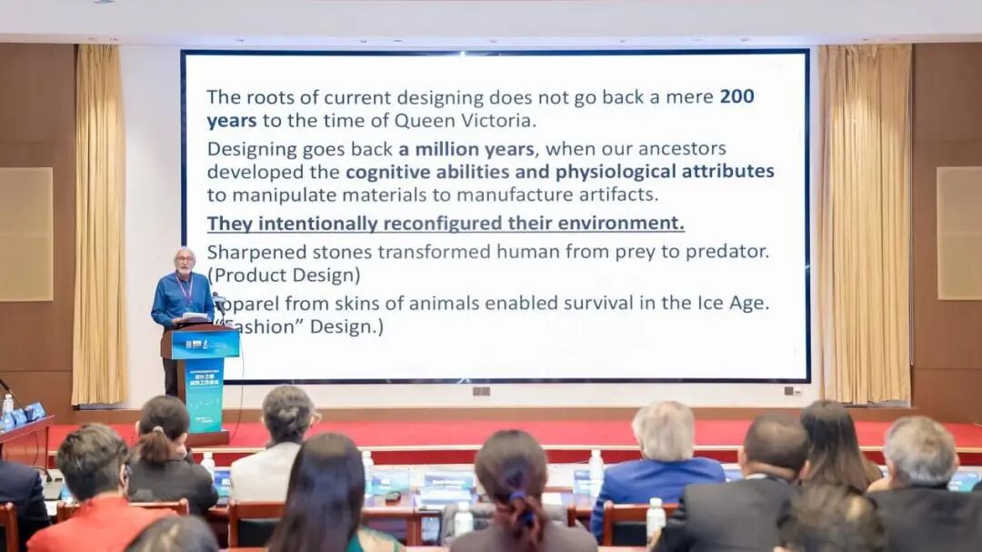 在主题分享环节,国际设计理事会前任主席大卫·格雷丝曼发表题为《厘清之必要:人工智能时代的设计、创意、工作与专业精神》的演讲。他指出,AI能够极大提高设计效率、释放创意潜能,但科技的进步从来不会削弱设计的价值。设计不仅是商业手段,更是一种改善人类生活的社会力量。从早期人类打磨石器、制作衣物起,设计就已存在,其核心始终是“为生活而创造”。