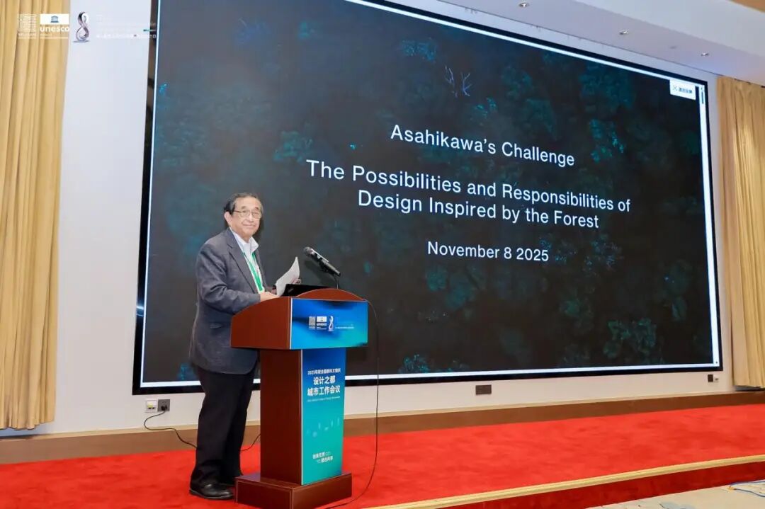 在随后举行的创意城市案例分享环节,来自日本、新加坡、墨西哥等国家的代表展示了各具特色的设计创新实践。日本旭川代表以“森林启发设计的可能性与责任”为主题,介绍了城市依托森林资源发展家具设计产业的经验。旭川市人口约31.5万,近年来本土硬木使用率从2014年的26.9%上升至2024年的78%,体现了可持续设计理念在生态与产业中的结合。他们还介绍了即将举办的2026旭川设计周,展示该市以森林为灵感、兼具生态责任与人文温度的发展路径。