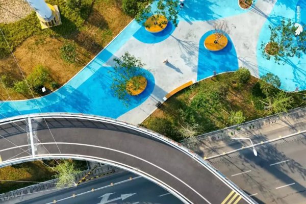 紧邻三环线的渣土车停车场改造成了口袋公园。
