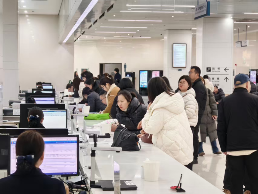 2月24日,春节假期后开工首日,汉阳区政务服务中心不动产登记窗口迎来办证小高峰,大厅内人头攒动,前来咨询、办理业务的市民络绎不绝。