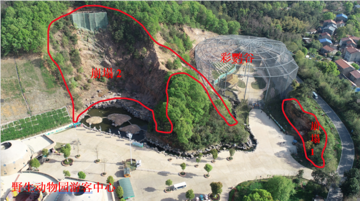 如今,走进武汉野生动物王国,入口山体上威风凛凛的“老虎头”格外吸睛:虎目圆睁、依势而塑,和青山融为一体,仿佛是守护动物王国的“守护神”,游客们纷纷驻足拍照,成为景区人气最高的打卡地标之一。没人能想到,四年前,这里还是让景区和监管部门揪心的地质灾害隐患点。2022年4月,园区西侧彩鹦谷边坡出现垮塌风险,紧邻游客中心,一旦落石滚落,直接威胁游客安全。