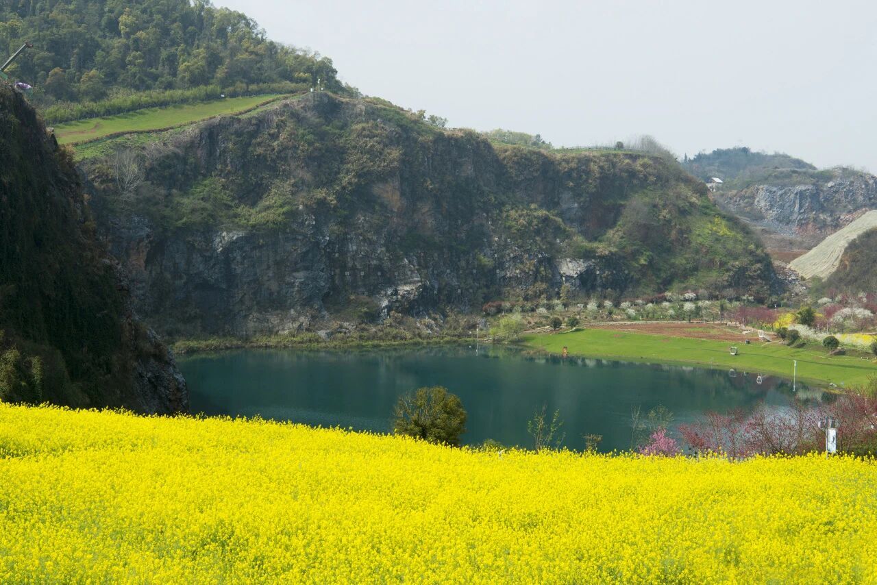 江夏区灵山生态修复项目是武汉首个由废弃矿山改造而成的生态文化旅游区。过去的灵山,由于历经数十年粗放式露天开采,山体破损、尘土弥漫。2019年起,灵山作为历史遗留工矿废弃地复垦利用试点项目,开启生态修复之路。如今正值春天,资源保护与生态修复小组导师、学员置身灵山矿区现场,只见千亩油菜花海连绵,阳光下的矿坑湖流光溢彩,犹如“天空之眼”,与静谧的高处山崖相映成趣。灵山矿区真正实现了从“城市伤疤”到“生态名片”的蜕变。