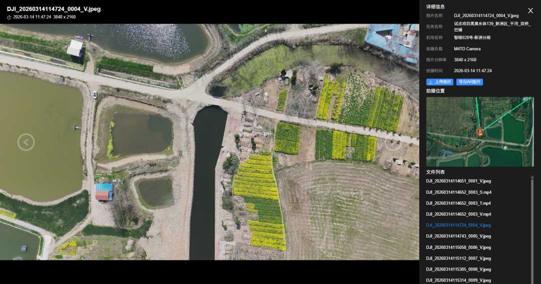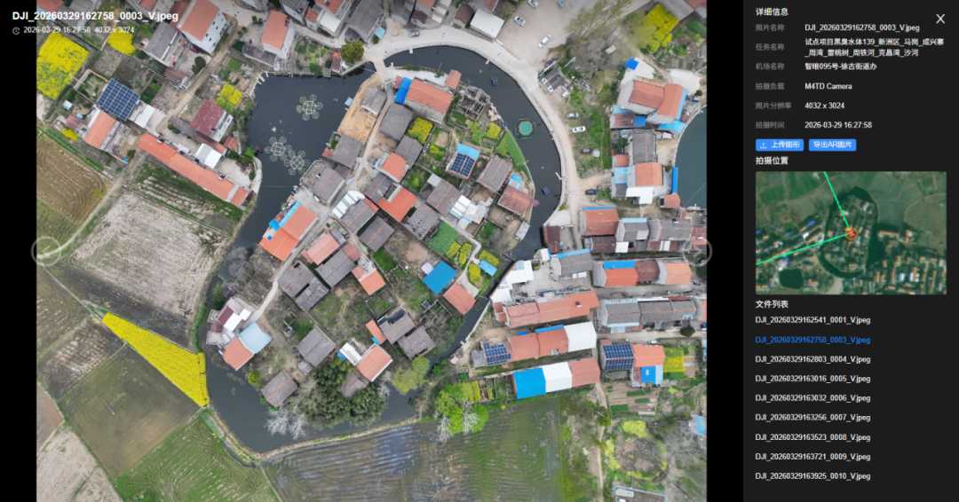 市测绘研究院自主研发的“城市智眼”低空遥感监测系统具有高精度、高机动性的优势,有效弥补了传统地面巡查覆盖范围有限、卫星监测精度不足的短板,实现了生态监管的“灵活补盲”。同时,发挥"无人机低空遥感应用湖北省工程研究中心”的技术优势,整合多年积累的时空数据资源与AI算法优势,对巡航过程中捕捉的影像数据进行实时分析,能够自动识别污染隐患的类型、位置与规模。这次助力新洲区生态环境局构建起“AI发现一多源核实一快速派单一现场处置一复核销号”的全闭环管理机制,打通了以往监管环节割裂、信息传递滞后等堵点。